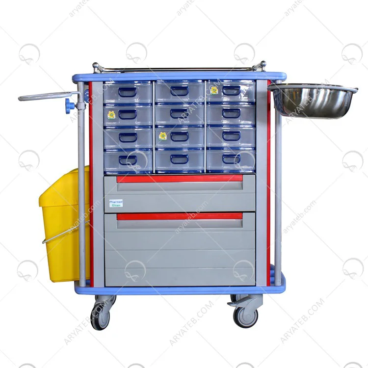 از دیگر انواع ترالی های حمل دارو که بسیار کاربردی می باشند و اغلب این ترالی ها مجهز به داروها و هم چنین تجهیزات پزشکی هستند و البته بدیهی است که داروها باید بعد از اتمام حتما حتما جایگزین گردد چرا که هر پرسنل در هر شیفتی بتواند به راحتی از داروهای ترالی استفاده کند . ترالی حمل دارو که در بخش اورژانس بسیار مورد استفاده قرار می گیرد هدف بسیار مهمی دارد و آن این است که با هدف احیای قلبی ریوی طراحی شده است . ترالی های حمل دارو با تمام تجهیزات و ملزومات مورد نیاز تیم پزشکی کاملا آماده است و این ترالی های حمل دارو اغلب در مکان هایی از بیمارستان یا اورژانس قرار می گیرند تا در صورت نیاز مورد استفاده فرد قرار گیرد و قادر است که تمام امکانات اولیه را به فرد بدهد . این نوع از ترالی از جنس پلاستیک تولید شده است که با اهدافی از قبیل برقراری و حفظ راه هوایی برای بیمار موثر است و در ضمن در نگه داری و گردش خون بیمار تاثیرگذار می باشد . به خاطر اینکه در شرایط خاص و بحرانی استرس و اضطراب بسیار زیاد است و پرسنل باید تمام خدمات اولیه را به بیمار بدهد پس لازم می باشد که تمام داروها و ملزومات ترالی از قبل بر روی آن قرار گرفته باشد و به صورت منظم و طبق چک لیست بر روی ترالی قرار گیرد . ترالی های حمل دارو دارای ابعاد بسیار استانداردی هستند که مورد تائید اداره تجهیزات پزشکی است و اداره تجهیزات پزشکی کاملا بر روی تولید این گونه ترالی ها نظارت می کنند و چون ترالی ها از ابزار بسیار با کیفیتی هستند پس بنابراین باید از مواد بسیار مرغوب تولید گردند .