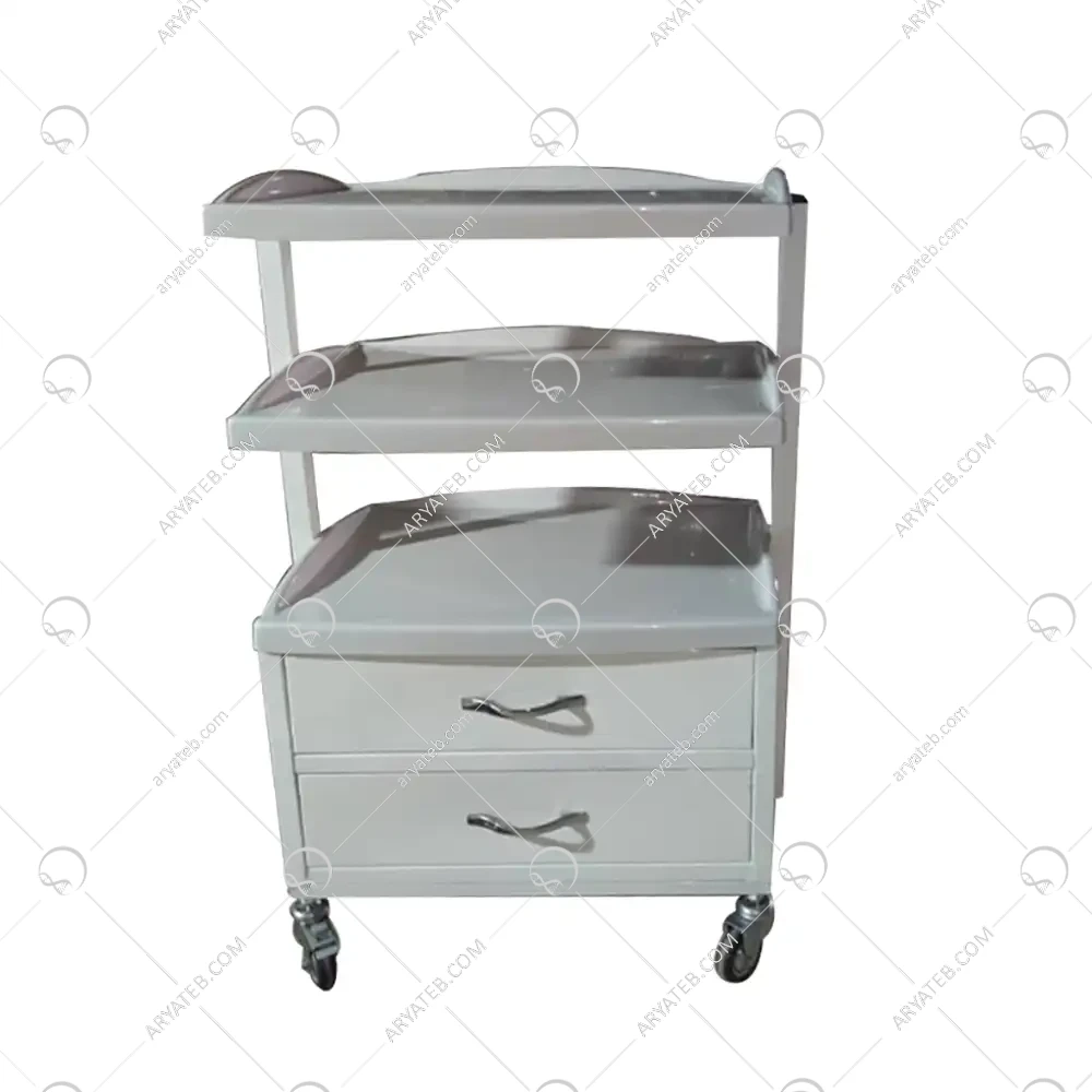 ترالی زیبایی دو کشو با طراحی مدرن و هماهنگ با محیطهای آرایشگاه، اسپا و کلینیک، جلوهای حرفهای و شیک به محیط کار میدهد. بدنه فلزی با پوشش رنگ الکترواستاتیک یا استیل ضدزنگ، و کشوهای پلاستیکی شفاف یا مات، ترکیبی از دوام و زیبایی را ایجاد میکنند.