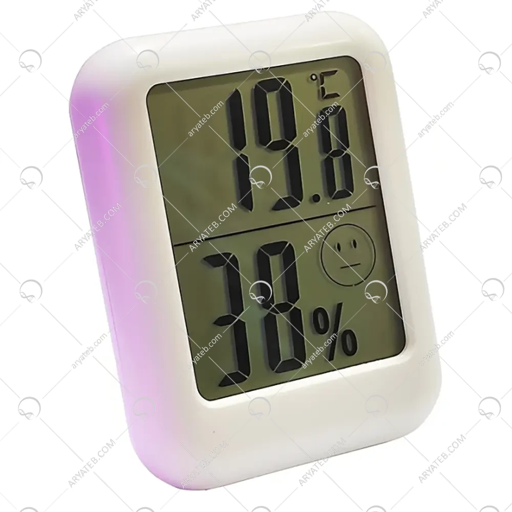 سنجش همزمان: نمایش دقیق درجه حرارت (ترمومتر) و درصد رطوبت نسبی (هایگرومتر) بر روی یک صفحه نمایش بزرگ LCD.