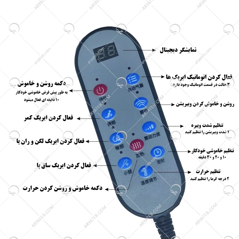 - ✓ برند AUX ✓ ماساژ کل بدن ✓ حرارت – فشار هوا – غلتک ✓ دارای تایمر 10 و 20 و 30 دقیقه ✓ دارای ریموت کنترل ✓ هوشمند ✓ هدیه ای گران قیمت ✓ از جنس چرم ✓ دارای 3 برنامه فشار هوا خودکار