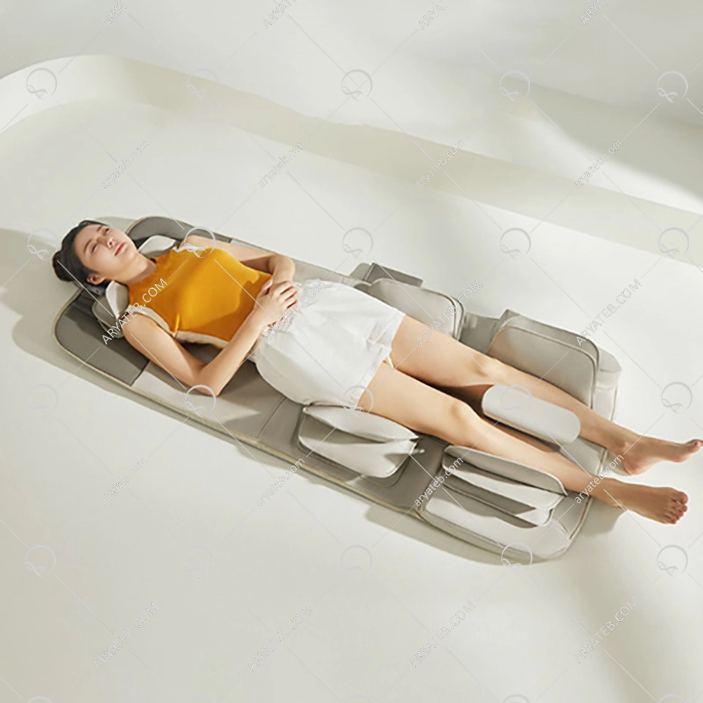 تشک ماساژور فول بادی با عملکرد کامپرشن فشار هوا و حرارت کار میکند. کیسه های تعبیه شده در این تشک بخوبی تمام بدن را ماساز میدهد. این ماساژور بهخوبی پاها و ناحیه لگن را ماساژ میدهد. در قسمت زیر باسن و کمر، کیسههای هوای تعبیه شدهاند که با باد شدن، این نواحی را نیز ماساژ میکنند. پس از ماساژ کمر، نوبت به زیر کتفها میرسد. دو کیسه هوا در این بخش وجود دارد که باد میشوند و به کتفها فشار وارد میآورند.