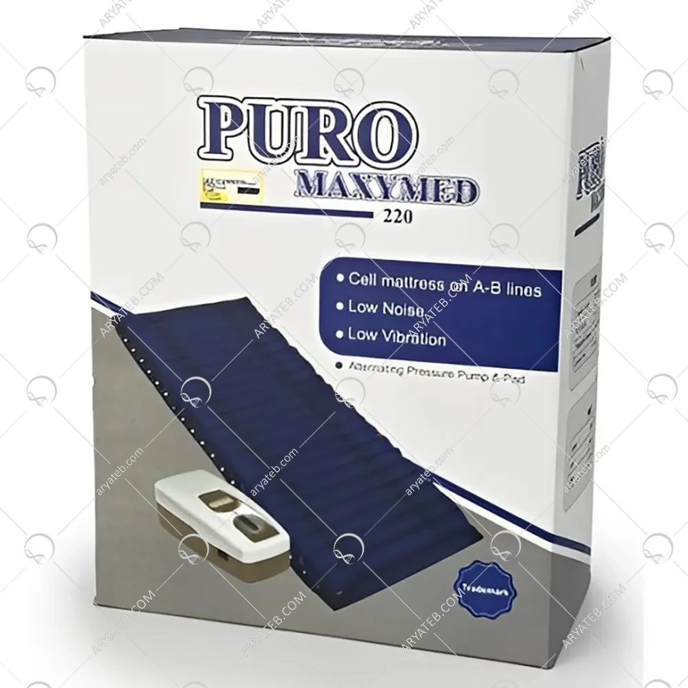 تشک مواج و ضد زخم Puro Maxymed220 دارای طراحی خاصی است که به تعریق بیش از حد جلوگیری کرده و میزان آن را کنترل میکند. هوایی که به داخل تشک از طریق پمپ آن انتقال پیدا میکند، باعث شده تا تشک دارای خاصیت ارتجاعی شده و راحتی بیشتری را به ارمغان آورد.
