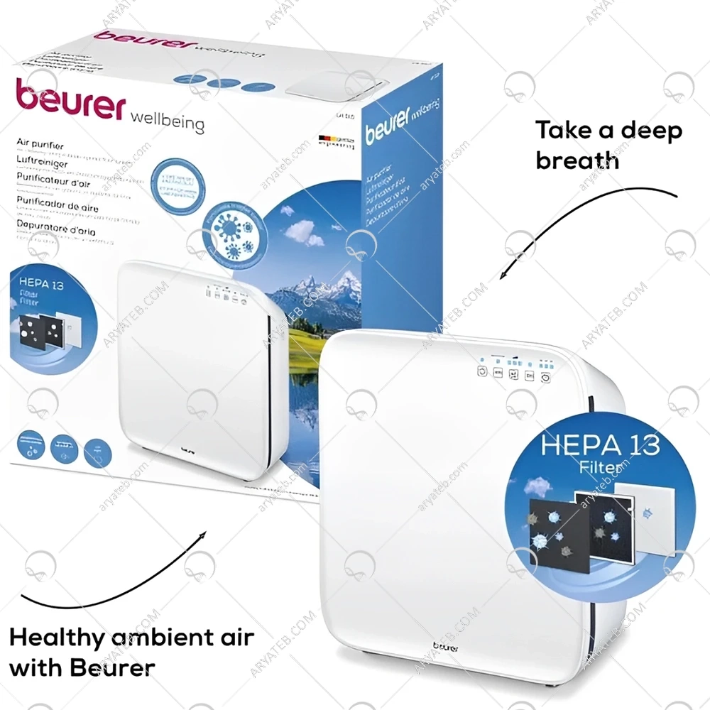 توضیحات محصول: دستگاه تصفیه و مرطوبکننده هوای بیورر مدل LR310 یکی از پیشرفتهترین دستگاههای تصفیه هوا است که با فناوری چندلایه خود، هوایی سالم و پاکیزه را برای محیط شما فراهم میکند. این دستگاه با فیلتر سهلایهی خود، شامل پیشفیلتر، فیلتر کربن فعال و فیلتر HEPA، قادر است تا ۹۹.۹۵٪ از ذرات معلق، گرد و غبار، باکتریها، ویروسها و بوی نامطبوع را از بین ببرد.