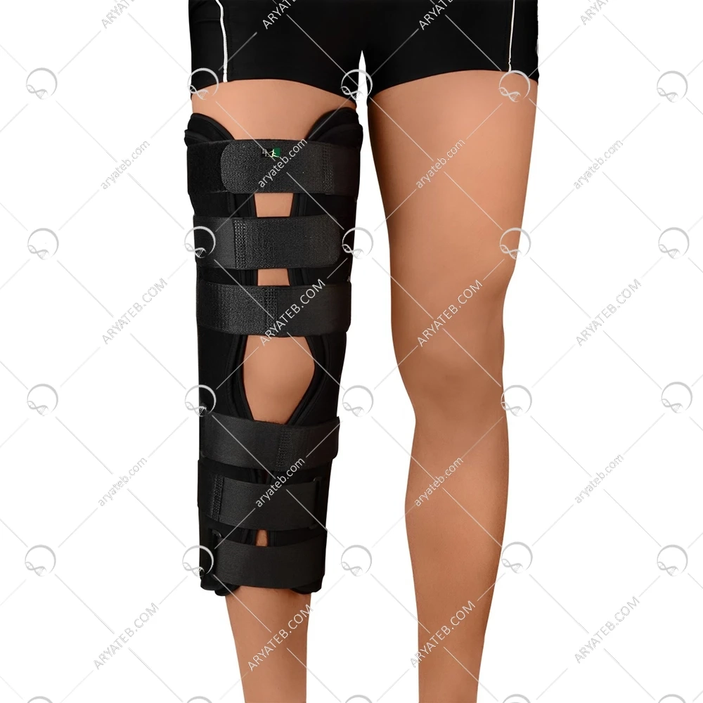 - یک زانوبند ثابت کننده مفصل زانو می باشد که زانوی آسیب دیده یا تحت عمل جراحی قرار گرفته را در وضعیت صاف حمایت می کند. استفاده از زانوبند ایموبلایزر در مراحل اولیه باز کردن گچ، شکستگی، آسیب عضلانی یا آسیب رباط های زانو توصیه می شود.
