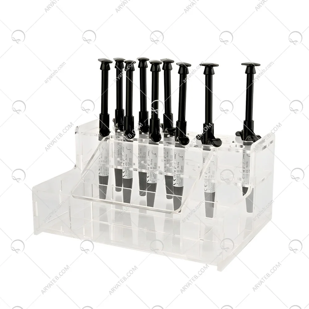جای کامپوزیت از تجهیزات دندانپزشکی است که برای نگهداری سرنگ های کامپوزیت در مطب های دندانپزشکی کاربرد دارد . این نوع از تجهیزات دندانپزشکی نیز ، از مواد اولیه بسیار با کیفیتی تولید می گردند و از جنس پلکسی می باشد . در سایزهای متفاوتی تولید می گردند و هم چنین دارای رنگ های مختلفی نیز می باشند . سایز ای نوع از جایگاه کامپوزیت دارای ابعاد استانداردی است و مورد تائید سازمان نظام پزشکی است .