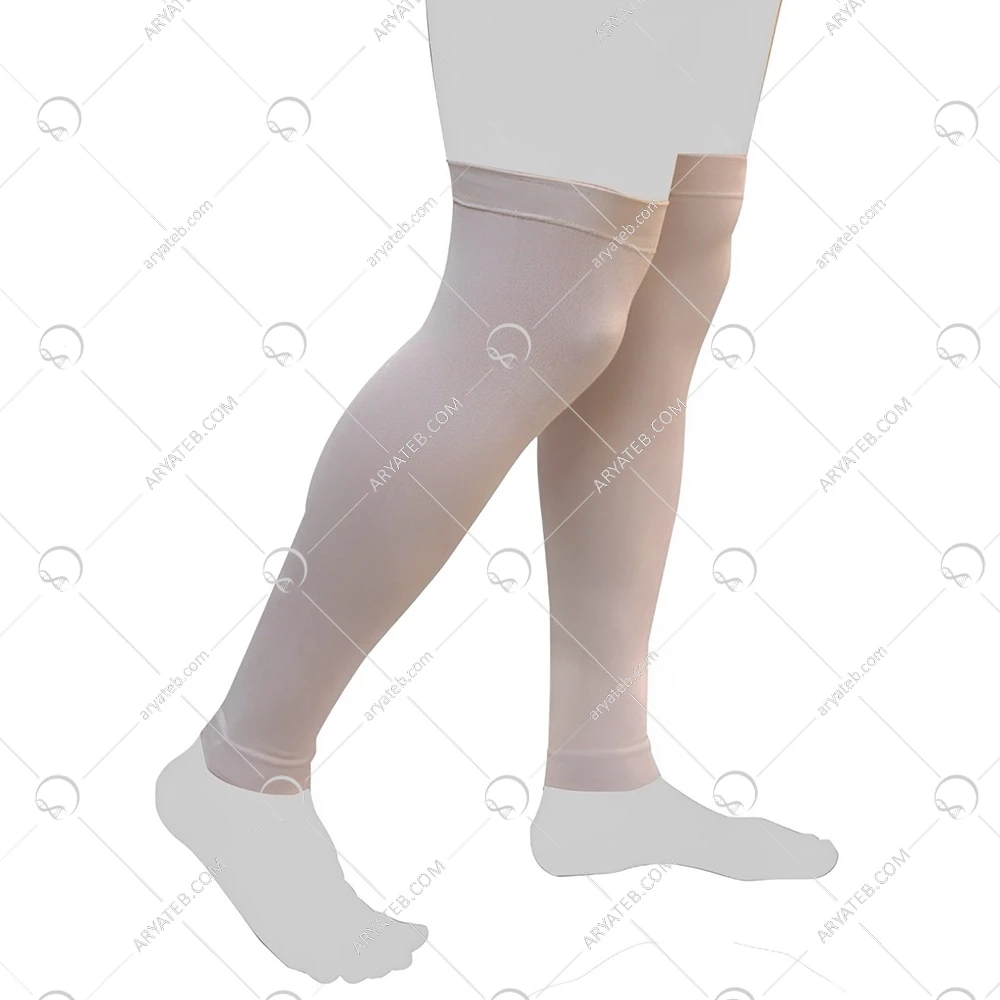 جوراب را با دقت به پاها بپوشانید. ابتدا از پاها به بالا حرکت کنید و جوراب را به تدریج بالا بکشید.