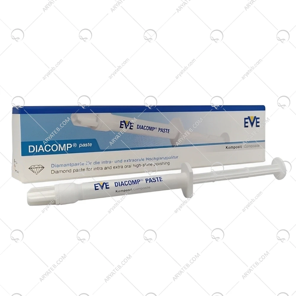 خمیر پولیش الماسه 2 گرمی کامپوزیت 9705 EVE Diacomp Paste DP3 یکی از محصولات باکیفیت و پرکاربرد برند EVE در حوزه دندانپزشکی است. این خمیر با ترکیب خاص خود، سطحی بسیار صاف، براق و طبیعی بر روی ترمیمهای کامپوزیتی ایجاد میکند و درخشندگی آن را برای مدت طولانی حفظ میکند.