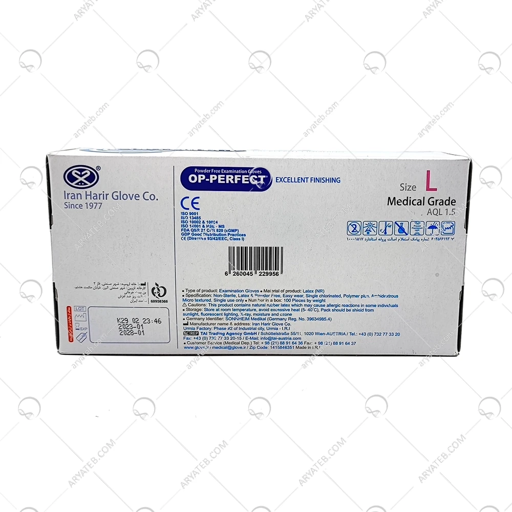 دستکش لاتکس بدون پودر اپی پرفکت دستکش لاتکس بدون پودر او پی لارج دارای مقاومت بالایی در برابر خراش و یا هر گونه بریدگی دارند.