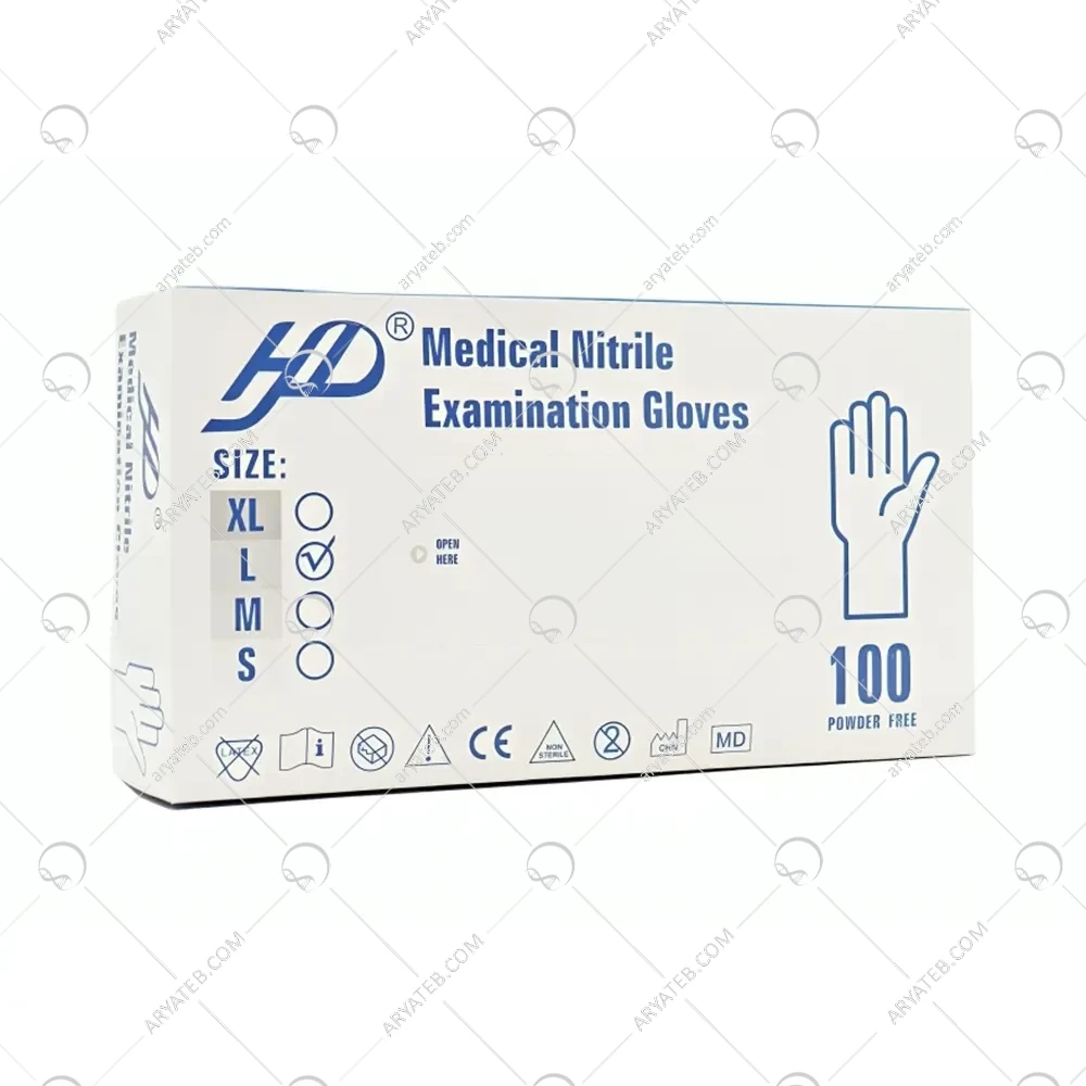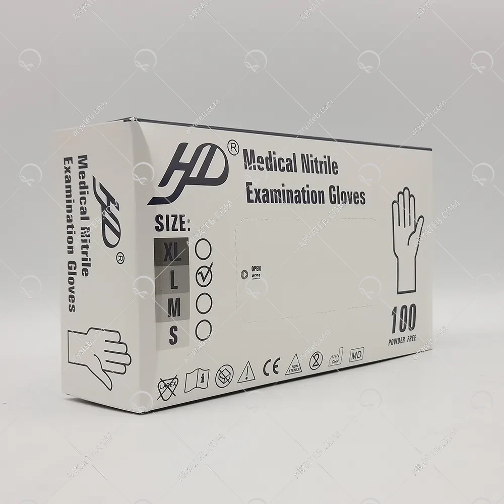 ترکیبات: دستکش نیتریل برند hd از نیتریل بوتادین رابر (NBR) با افزودنیهایی برای افزایش استحکام و مقاومت تشکیل شده است.