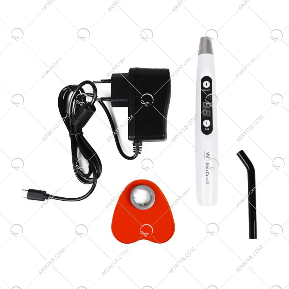 - LED: دستگاه Max Cure 3 از نور LED برای پلیمریزاسیون استفاده میکند. نور LED به دلیل طول موج خاص خود (معمولاً 430-490 نانومتر) برای سخت کردن مواد رزینی و دندانی بسیار مؤثر است.