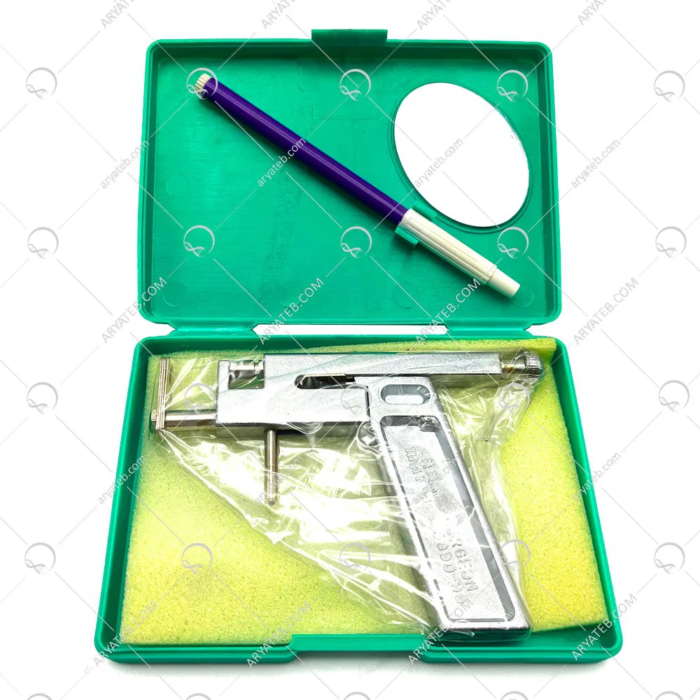 دستگاه گوش سوراخ کن یک ابزار است که برای سوراخ کردن سطح پوست گوش جهت نصب گوشواره یا جواهرات دیگر استفاده میشود. این ابزار معمولاً شامل یک وسیله قلابی یا سوزنی میباشد که به طور مستقیم از طریق سطح پوست گوش عبور میکند تا سوراخی برای قرار دادن گوشواره ایجاد کند. گوش سوراخ کن فلزی معمولاً از جنس استیل یا آلیاژهای فلزی دیگر ساخته میشود که قدرت و سختی لازم برای سوراخ کردن پوست را داشته باشند. این ابزارها معمولاً دارای نوک تیزی هستند که به وسیله آنها میتوان سطح پوست را به طور دقیق سوراخ کرد.