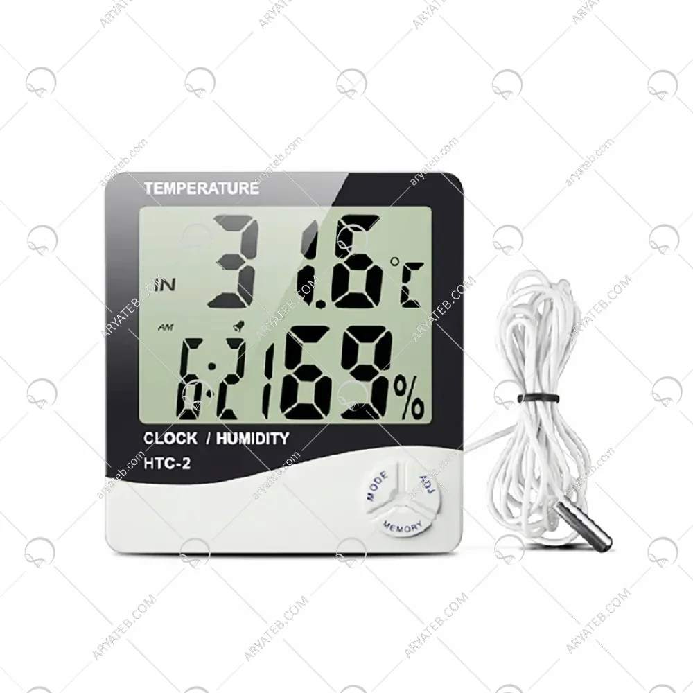 دماسنج دیجیتال سنسوردار یکی از ارزان ترین و پر کاربرد ترین دماسنج های دیجیتالی بوده که می تواند در محیط های سر پوشیده مانند اتاق یا دفتر کار از آن استفاده نمود و دارای ابعاد 106 × 98 × 23 میلی متر می باشد و چون دارای دو سطح نمایش است ؛ اعداد بزرگ تر نمایش داده شده و خوانایی بسیار خوبی نیز دارد ، ابعاد صفحه نمایش HTC_1 مانند مدل های جدید تر ۸×۶ سانتی متری می باشد و می توان آن را به روی دیوار و یا توسط پایه آن به روی میز تحریر قرار داد . دماسنج ها و رطوبت سنج های دیجیتال یکی از کاربردی ترین محصولات برای تنظیم وکنترل دما و رطوبت محیط می باشند . این محصولات از وسایل ضروری برای محیط های صنعتی از جمله گلخانه ها ، مرغ داری ها ،سوله های صنعتی می باشند . امروزه این محصولات برای منزل جهت صرفه جویی درمصرف انرژی و جلوگیری از اتلاف انرژی استفاده می شود .