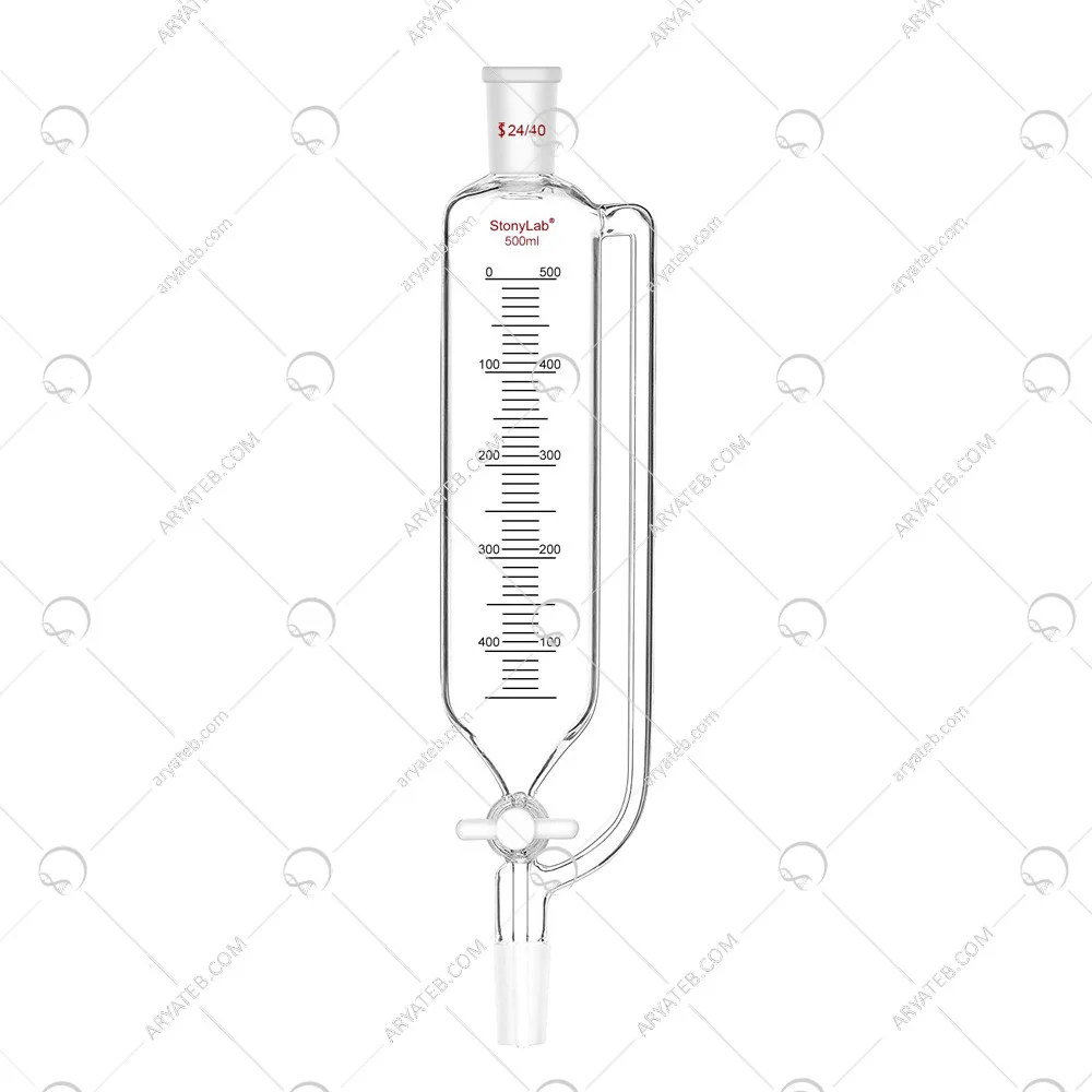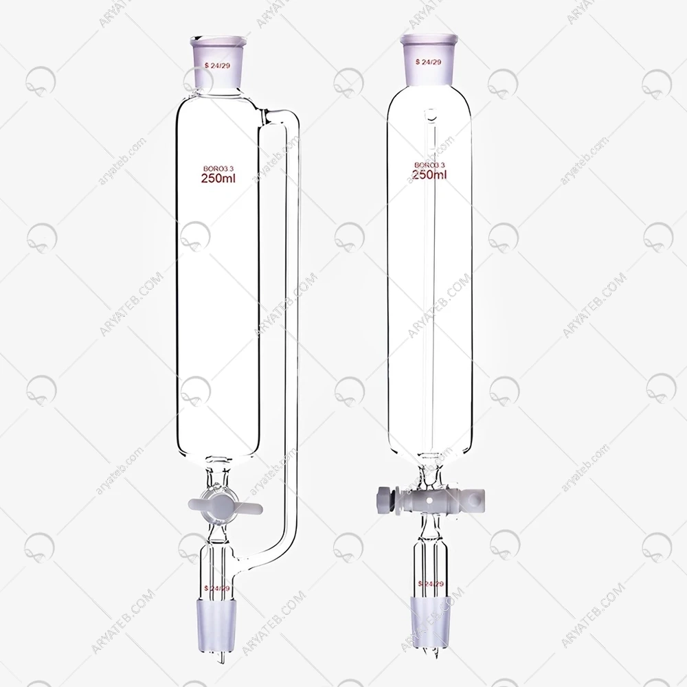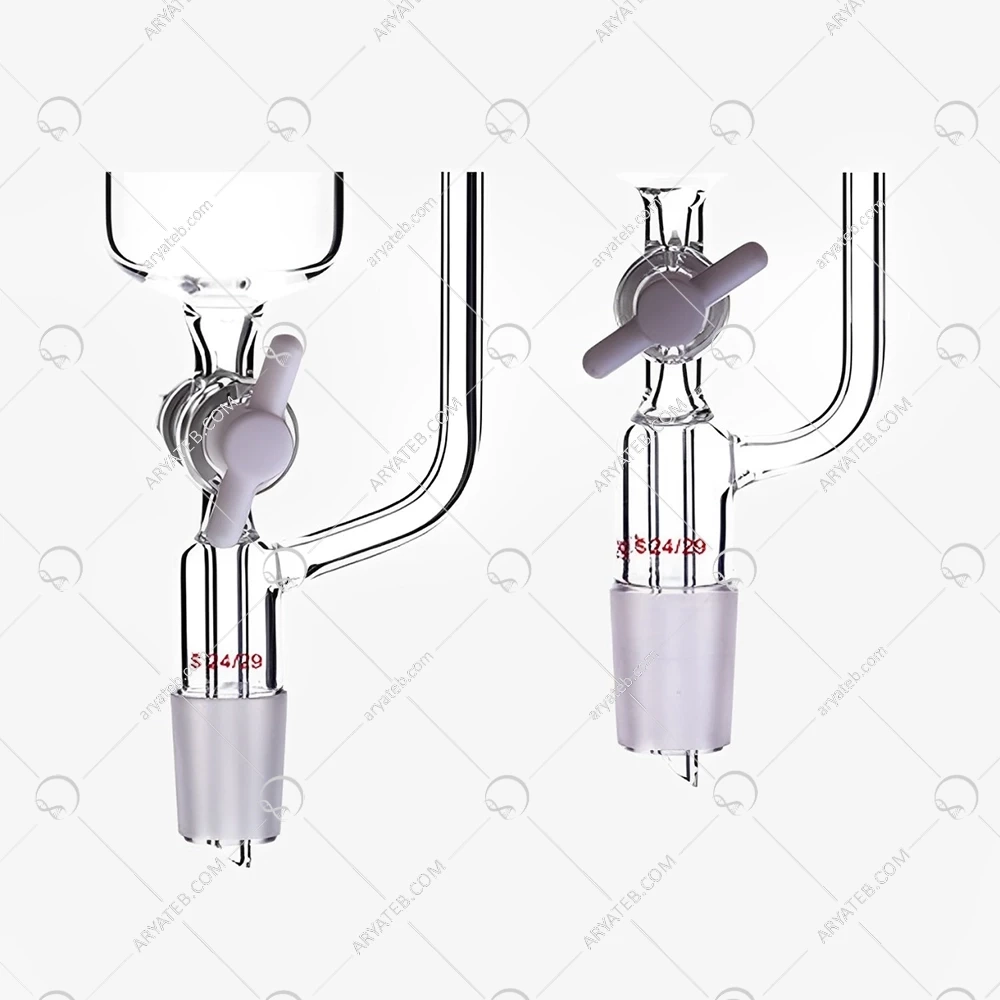 مزیت: هنگام افزودن مایع به یک قیف جداکننده معمولی، لازم است دریچه انتهای بالایی قیف را باز کنید یا شیار روی درپوش را با سوراخ کوچک روی دهانه بطری تراز کنید تا مایع داخل قیف جریان یابد. به آرامی پایین در حالی که قیف افت فشار ثابت دارای یک لوله متصل به بالا است که می تواند فشار هوا را بدون باز کردن درپوش متعادل کند.