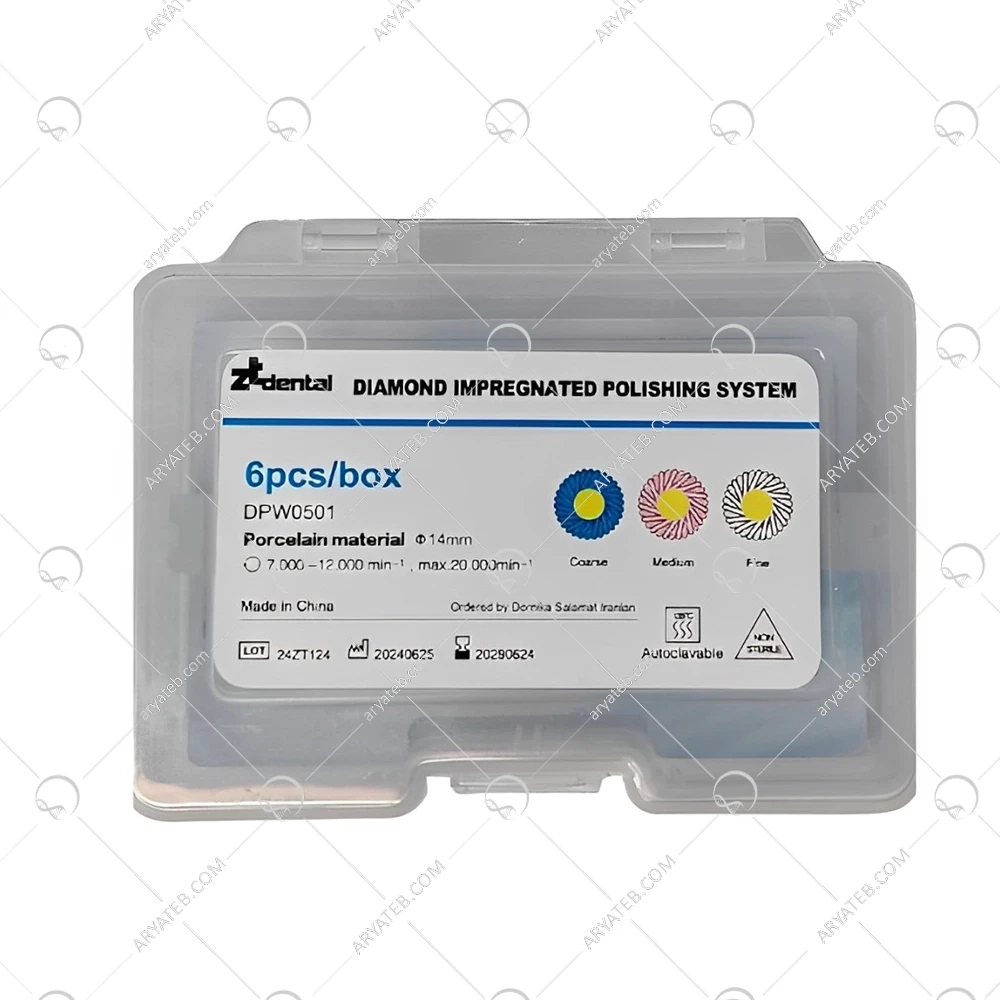 دیسک خورشیدی پرسلن زد تی دنتال (ZT Dental) یک ابزار تخصصی در دندانپزشکی است که بهطور خاص برای ایجاد و ترمیم ترمیمهای دندانی از مواد پرسلنی طراحی شده است. این دیسکها به دلیل ویژگیهای خاص خود، به دندانپزشکان این امکان را میدهند که بهطور مؤثری به انجام کارهای پالیش و شکلدهی بر روی ترمیمهای پرسلن بپردازند.