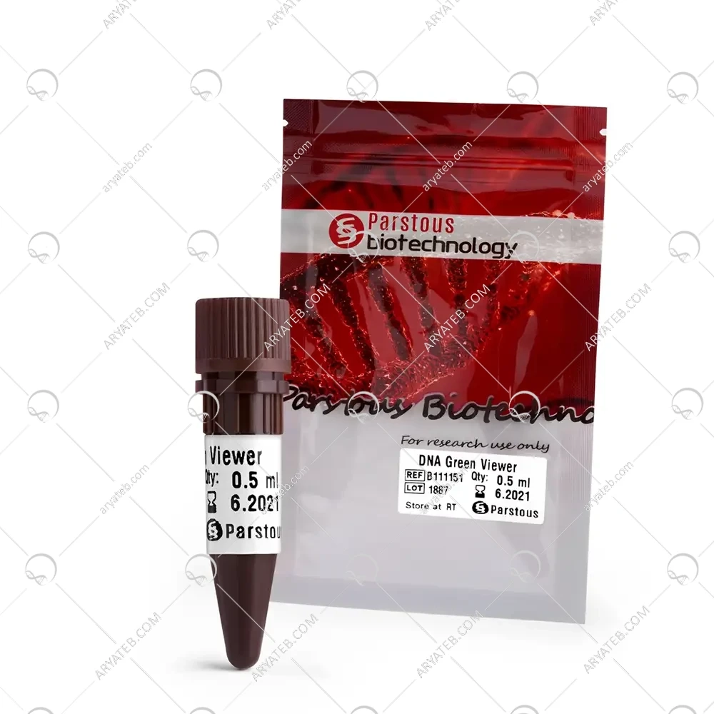 رنگ بیخطر DNA (DNA Green Viewer™) که توسط شرکت پارس توس تولید و عرضه میشود، یک رنگ فلورسنت با حساسیت بالا و ایمنی تضمین شده است که به منظور رنگآمیزی و شناسایی اسیدهای نوکلئیک (DNA دورشتهای، DNA تکرشتهای و RNA) در ژل آگارز طراحی شده است. این محصول به عنوان یک جایگزین مطمئن و کارآمد برای رنگ سنتی و خطرناک اتیدیوم بروماید (Ethidium Bromide یا EB) مورد توجه گسترده محققین و آزمایشگاههای سراسر کشور قرار گرفته است.
