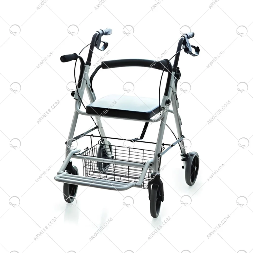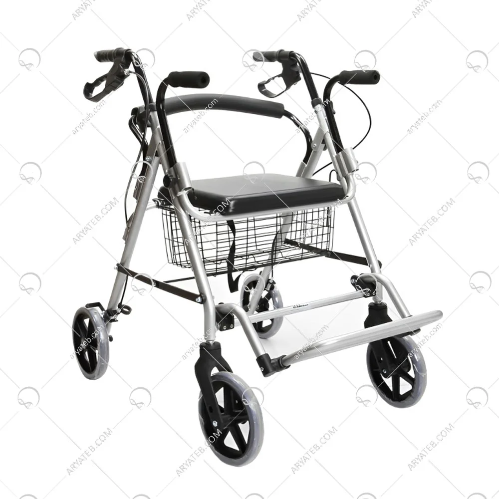 دارای پایه و صندلی برای استراحت فرد و دارای ترمزهای حلقه ای است که به کنترل واکر در شیب ها کمک می کند و می توانید در هنگام استراحت چرخ های آن را قفل کنید. تعادل را حفظ کنید و وزن را در همه قسمت ها توزیع کنید.یک سبد پارچه ای برای قرار دادن وسایل وجود دارد. یکی دیگر از ویژگی های این واکر چرخ دار تکیه گاه متحرک آن است که امکان تغییر وضعیت را به کاربر می دهد و افراد مسن می توانند آن را بچرخانند و به جلو و عقب بنشینند.