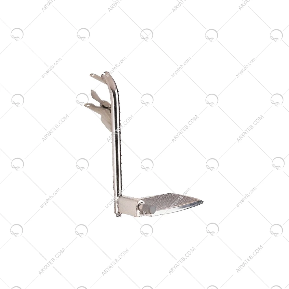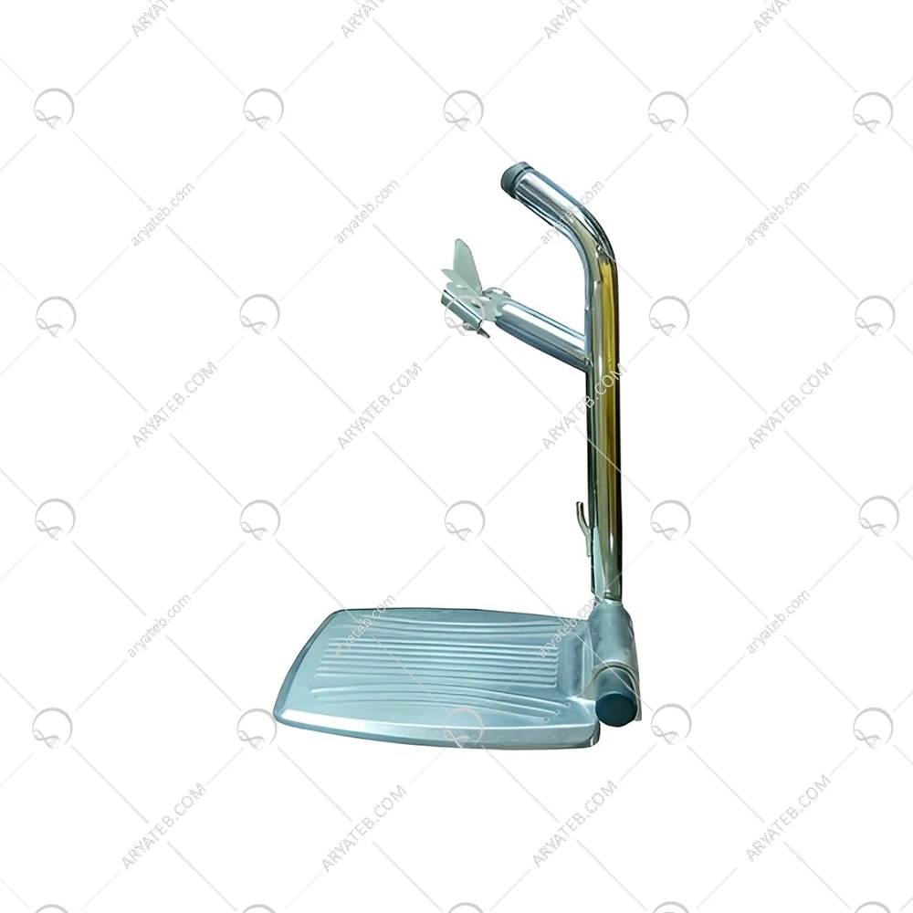 - زیرپایی کامل خارجی ویلچر ارتوپدی بصورت جفتی شاسی جاپایی چپ و راست به همراه لوله های L مانند و کفی زیر پایی آلومینیومی