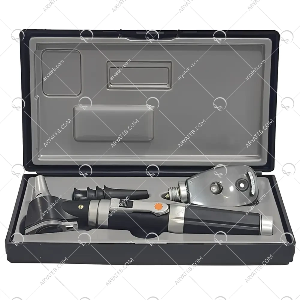 این ست غالباً شامل افتالموسکوپ، اتوسکوپ و برخی لوازم جانبی مثل اسپکول و هندلهای مخصوص است. زیر این بخش، بهصورت دقیق اجزای اصلی را بررسی میکنیم: