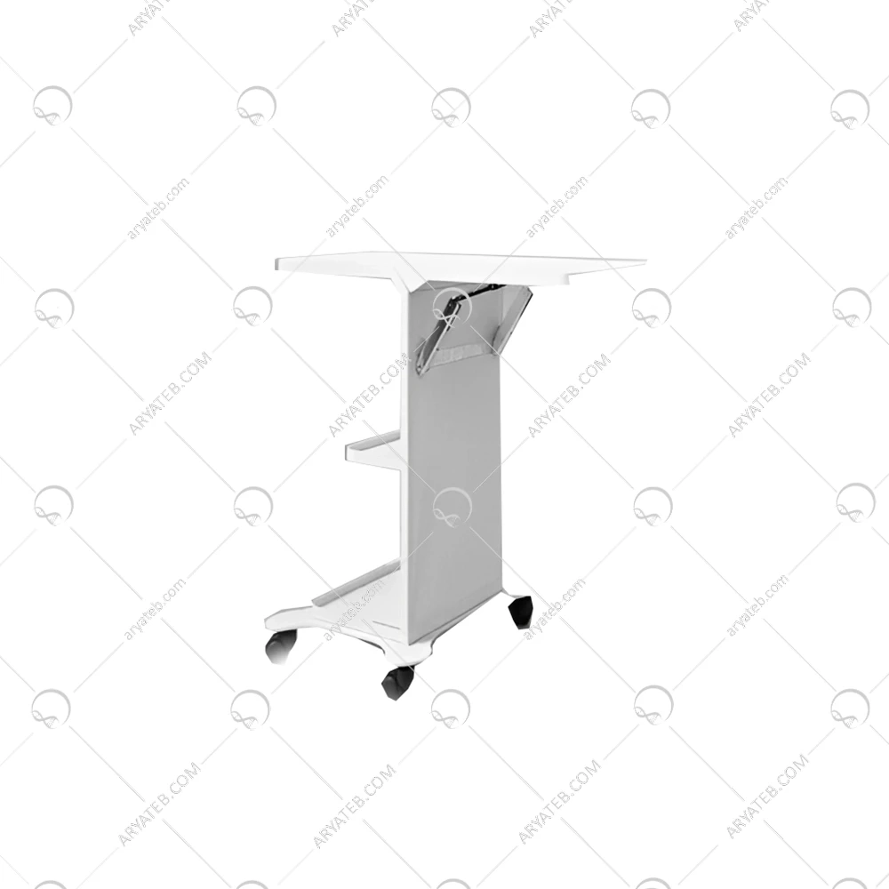 - تنظیمات: ترالی به کنار یونیت دندانپزشکی آورده شده و ارتفاع آن متناسب با نیاز جراح تنظیم میشود.