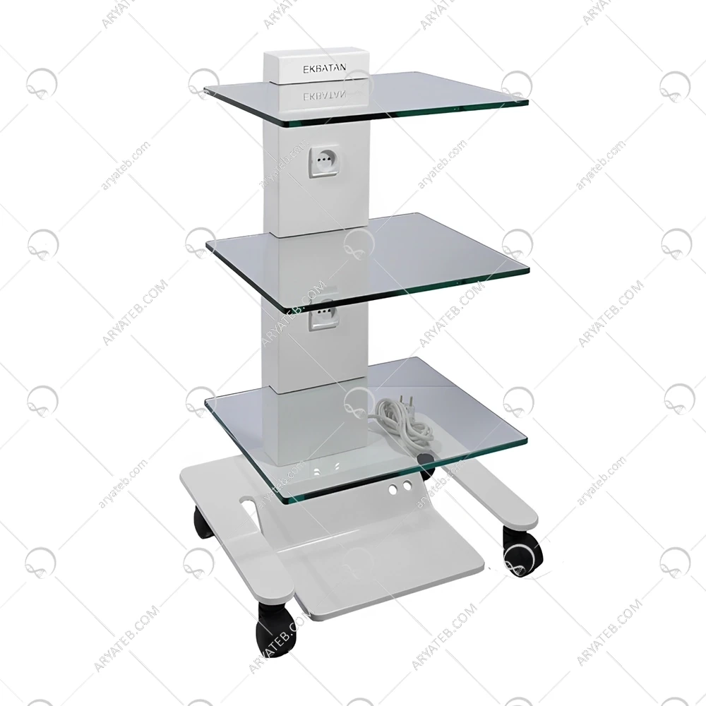سرویتور 3 طبقه شیشه ای با پایه پدال دار پزشکی نمادی از ترکیب عملکرد، بهداشت و زیبایی.