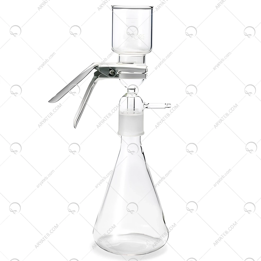 ارلن خلاء 1000 سی سی: این ارلن از جنس شیشه بوروسیلیکات ساخته شده و دارای یک خروجی جانبی برای اتصال به پمپ خلاء است.