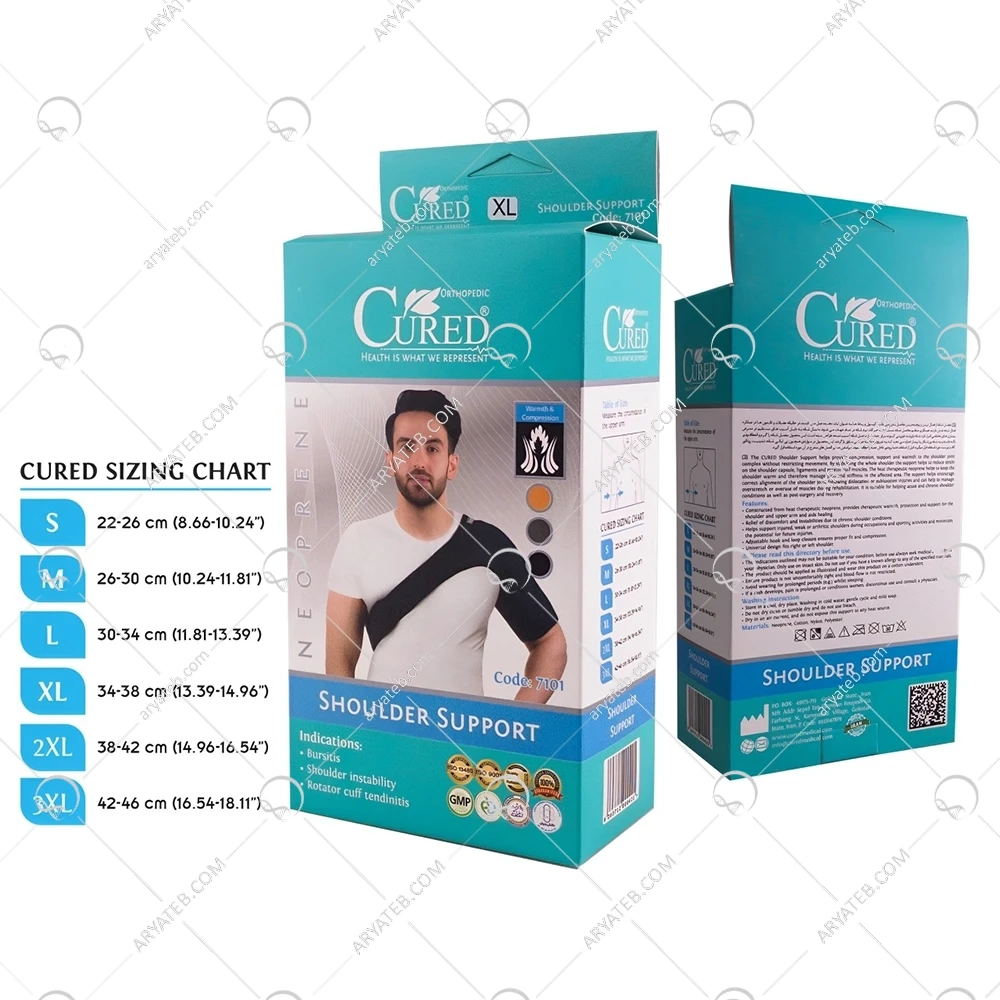 - مفصل شانه به دلیل آسیب های مستقیم در معرض بیماری های مختلفی قرار دارد. شانه بازوبند نئوپرنی کیورد، برای حمایت از مفصل شانه آسیب دیده، طراحی شده است. این محصول مفصل شانه را گرم و انعطاف پذیر نگه داشته و به شانه ورزشکار یا بیمار اجازه می دهد که به تدریج به دامنه حرکتی سابق بازگردند