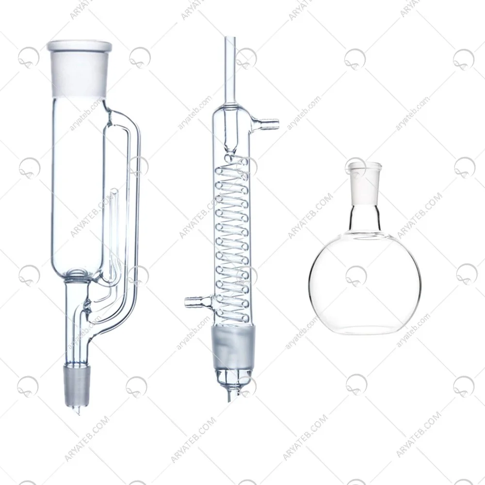 مجموعه کامل ظروف شیشه ای سوکسله شامل موارد زیر می باشد: