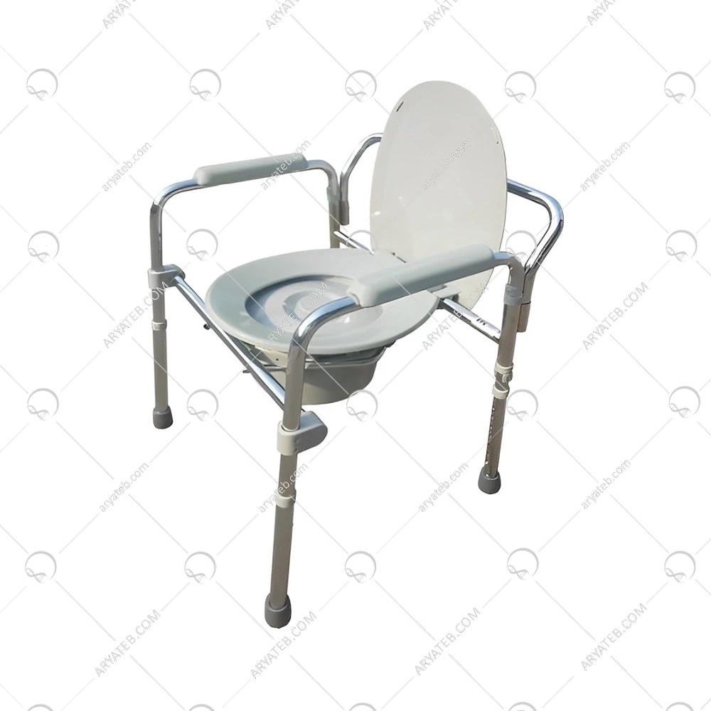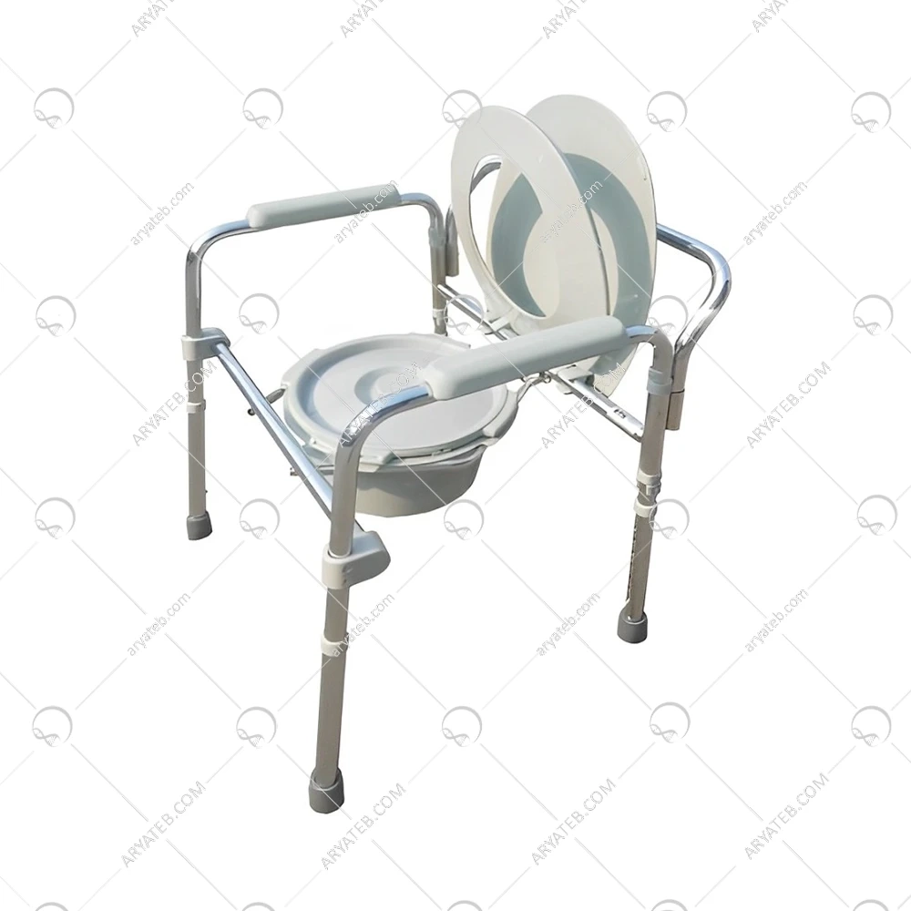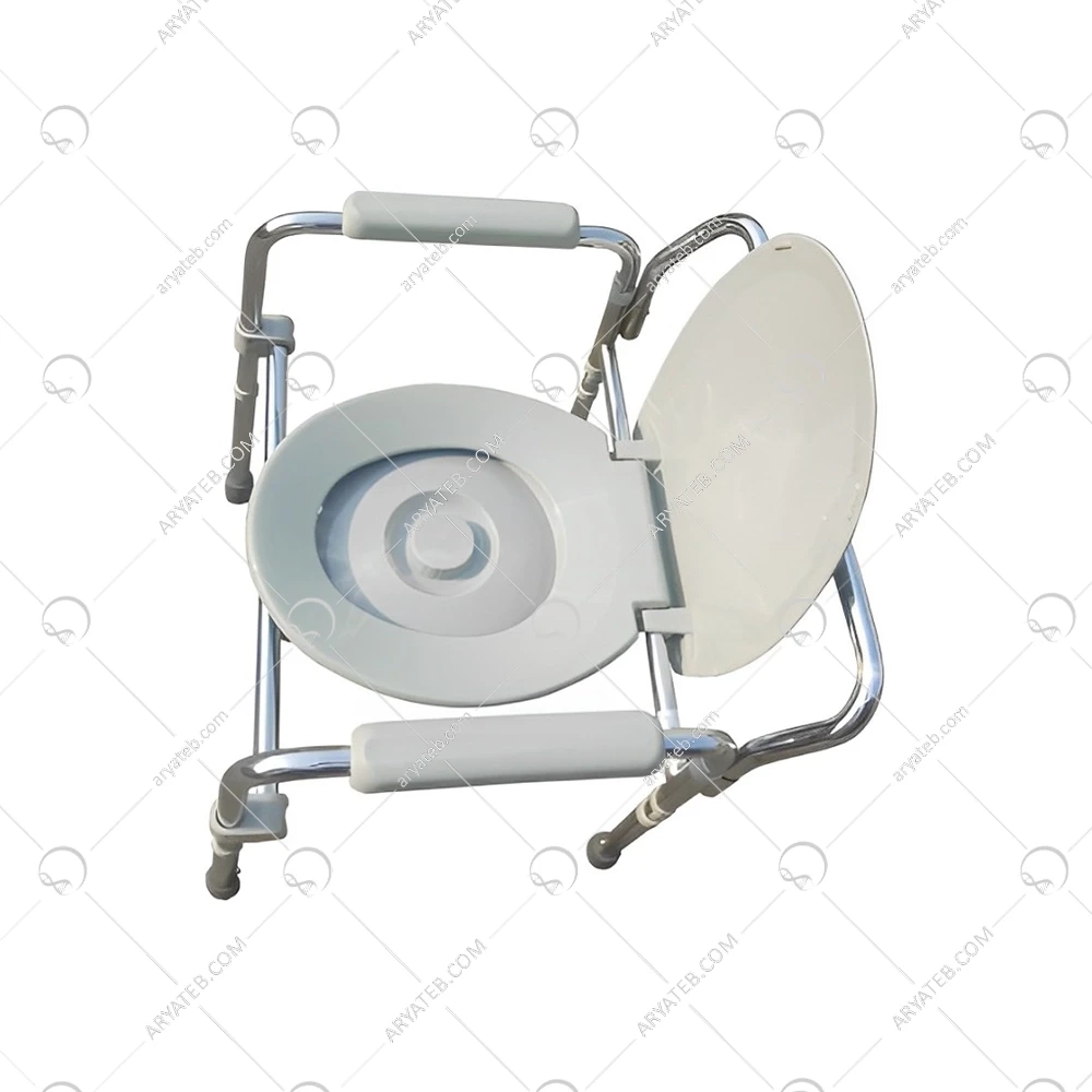 - تاشو صندلی توالت مبله بدون چرخ قابل تنظیم ارتفاع 16 سانتیمتر همراه با لگن گرد درب دار قابلیت استفاده از قیف بلند دارای قیف نیمه جهت استفاده روی توالت فرنگی همراه با زیردستی جهت راحت نشستن و برخاستن