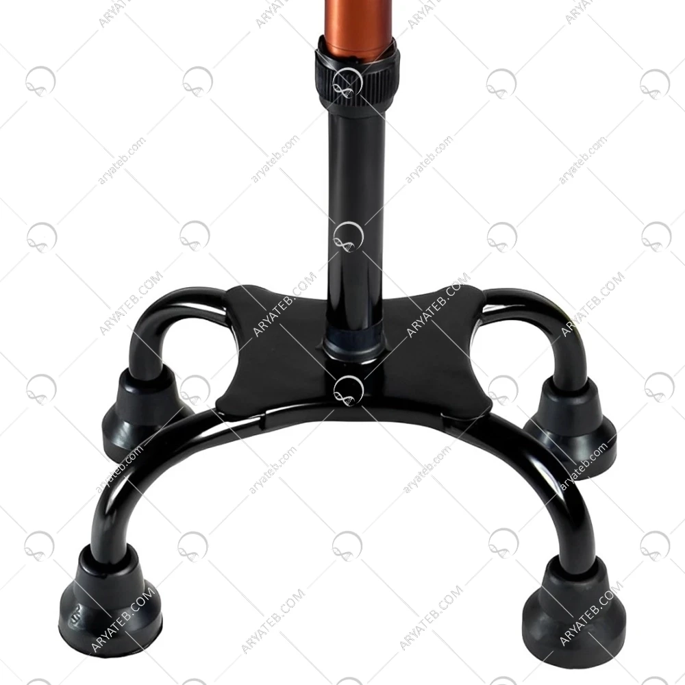 - نوع عصا: چهار پایه: چهار پایه بودن این عصا باعث افزایش سطح اتکا و پایداری میشود و خطر زمین خوردن را کاهش میدهد.