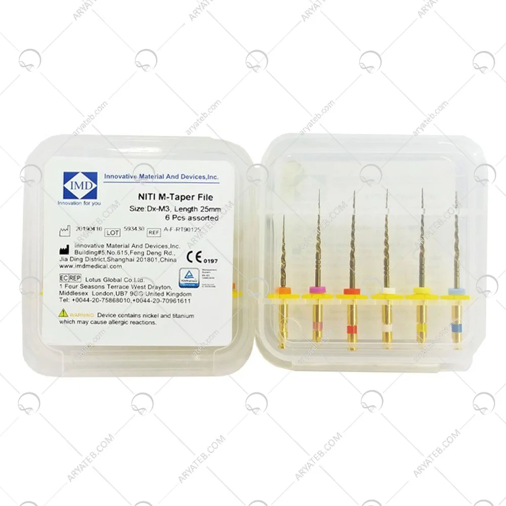 فایل روتاری پروتیپر Protaper IMD از مواد مختلفی مانند فولاد ضد زنگ، نیکل-تیتانیوم و تنگستن-کاربید ساخته می شوند. آنها در شکل ها، اندازه ها و طول های مختلف برای تناسب با کانال های ریشه مختلف هر دندان وجود دارند. فایل ها همچنین با یک روان کننده پوشانده شده اند تا اصطکاک را کاهش داده و خطر آسیب دیدن یا شکستن فایل را به حداقل برسانند.