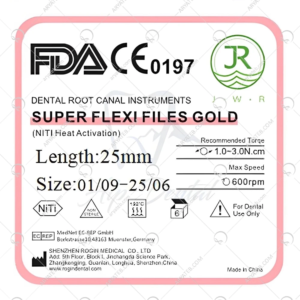 فایل روتاری گلد 4/6 درصد JWR یکی از پیشرفتهترین ابزارهای دندانپزشکی اندو است که برای آمادهسازی کانال ریشه دندان استفاده میشود. این فایلها با طراحی منحصر به فرد و جنس نیکل تیتانیوم با کیفیت بالا، انعطافپذیری و مقاومت بسیار بالایی داشته و به دندانپزشک اجازه میدهند تا به راحتی و با دقت کانالهای ریشه را تمیز و شکل دهند.