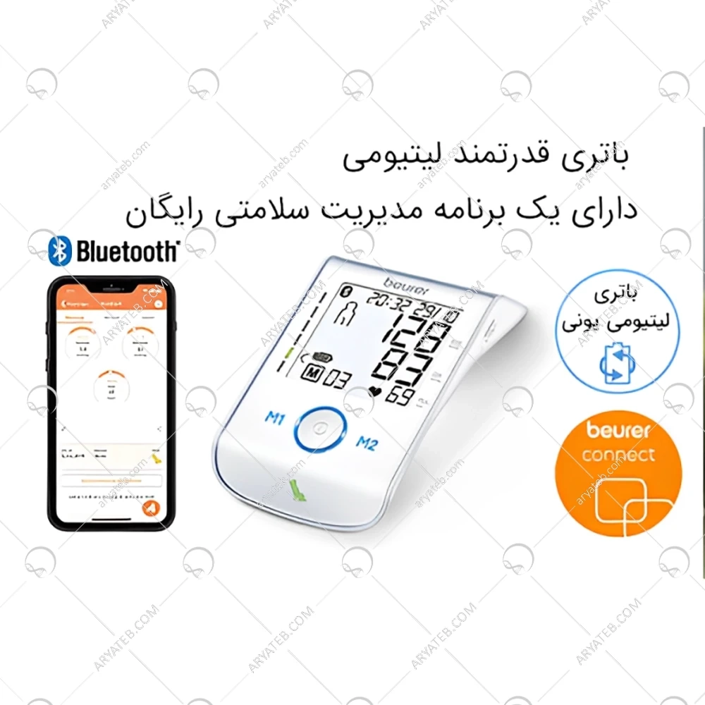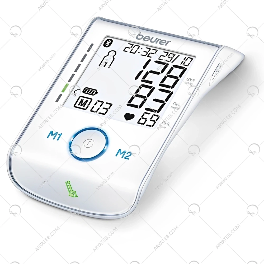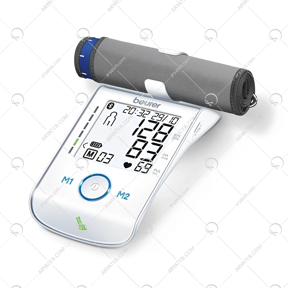 فشارسنج بازویی دیجیتال بیورر مدل BM85 یک دستگاه پیشرفته برای اندازهگیری دقیق فشار خون و ضربان قلب است. این دستگاه با طراحی شیک و کاربری آسان، دارای صفحهنمایش بزرگ و خوانا است که نتایج را بهوضوح نمایش میدهد. از ویژگیهای برجسته BM85 میتوان به قابلیت تشخیص آریتمی (نامنظمی ضربان قلب) و نشانگر استراحت (همودینامیک) اشاره کرد که به کاربر کمک میکند تا در شرایط مناسب اندازهگیری را انجام دهد. این فشارسنج مجهز به ۱۲۰ جایگاه حافظه برای دو کاربر است که امکان ذخیره و مرور نتایج قبلی را فراهم میکند. همچنین، با قابلیت اتصال به گوشی هوشمند از طریق بلوتوث و کابل USB، کاربران میتوانند دادههای خود را بهراحتی منتقل و تحلیل کنند. منبع تغذیه دستگاه باتری لیتیومی شارژی است که با استفاده از کابل USB قابل شارژ است. این ویژگیها BM85 را به گزینهای مناسب برای افرادی که به دنبال دقت، راحتی و امکانات پیشرفته در یک فشارسنج هستند، تبدیل کرده است.