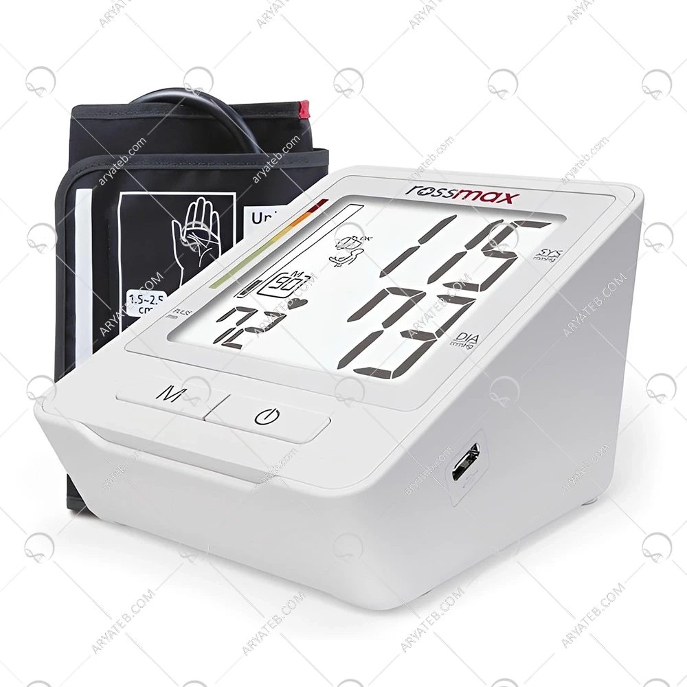 - برند: rossmax حافظه 90 نتیجه اخیر و میانگین 3 نتیجه اخیر نشانگر ریسک فشارخون بالا تشخیص ضربان نامنظم قلب قابلیت ضد لرزش و با صفحه خوانا و بزرگ