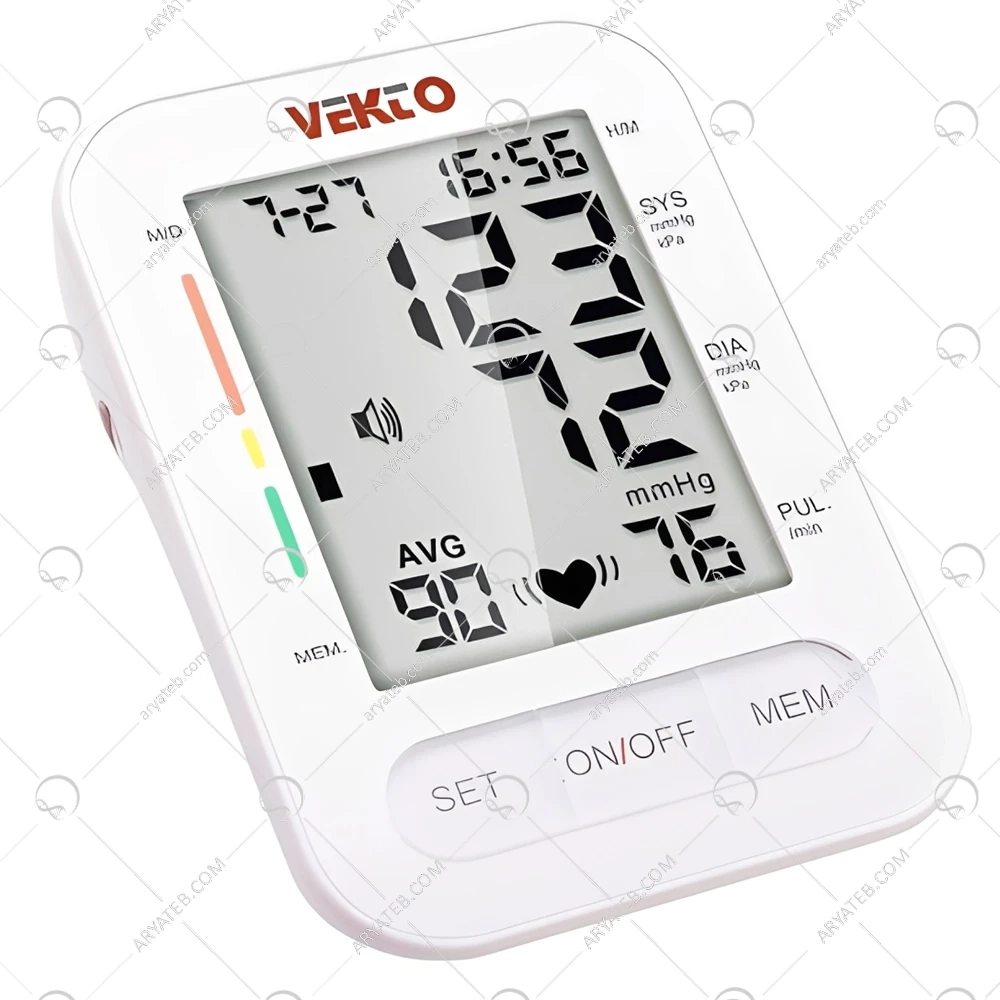 فشارسنج بازویی وکتو مدل B18 به عنوان یک ابزار پایش فشار خون (HBPM) با تمرکز اصلی بر دقت کلینیکی ثابت و قابلیت اطمینان بالا در طولانیمدت طراحی شده است. این مدل، که از متد استاندارد و معتبر نوسانسنجی (Oscillometric) بهره میبرد، الگوریتمهای اندازهگیری خود را با فیلترهای نویز قوی تجهیز کرده است تا حداقل خطای ممکن را در اندازهگیری فشار سیستولیک و دیاستولیک تضمین کند. تمایز عمده B18 در ساختار مقاوم و طراحی ارگونومیک ساده آن است که آن را برای استفاده مکرر در محیطهای خانگی شلوغ یا حتی نیمهکلینیکی مناسب میسازد. بر خلاف مدلهای سخنگو، B18 بر خوانایی بصری بینظیر تأکید دارد؛ از این رو مجهز به یک نمایشگر LCD بزرگ و فوقالعاده واضح است که نتایج را با اعداد بسیار درشت نمایش میدهد. این دستگاه قابلیت ذخیرهسازی مقادیر زیادی از اندازهگیریها را برای دو کاربر مجزا فراهم میکند، که امکان پایش روند درمانی طولانیمدت را فراهم میآورد. همچنین، مجهز به شاخص تشخیص آریتمی (IHB) و طبقهبندی WHO است که به کاربر اجازه میدهد وضعیت سلامت قلب و عروق خود را به سرعت تفسیر کند، و با وجود سادگی، یک ابزار جامع برای مدیریت روزانه فشار خون است.