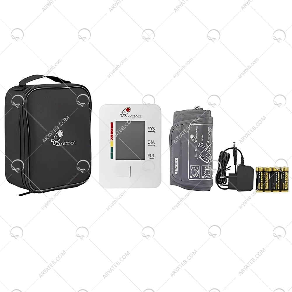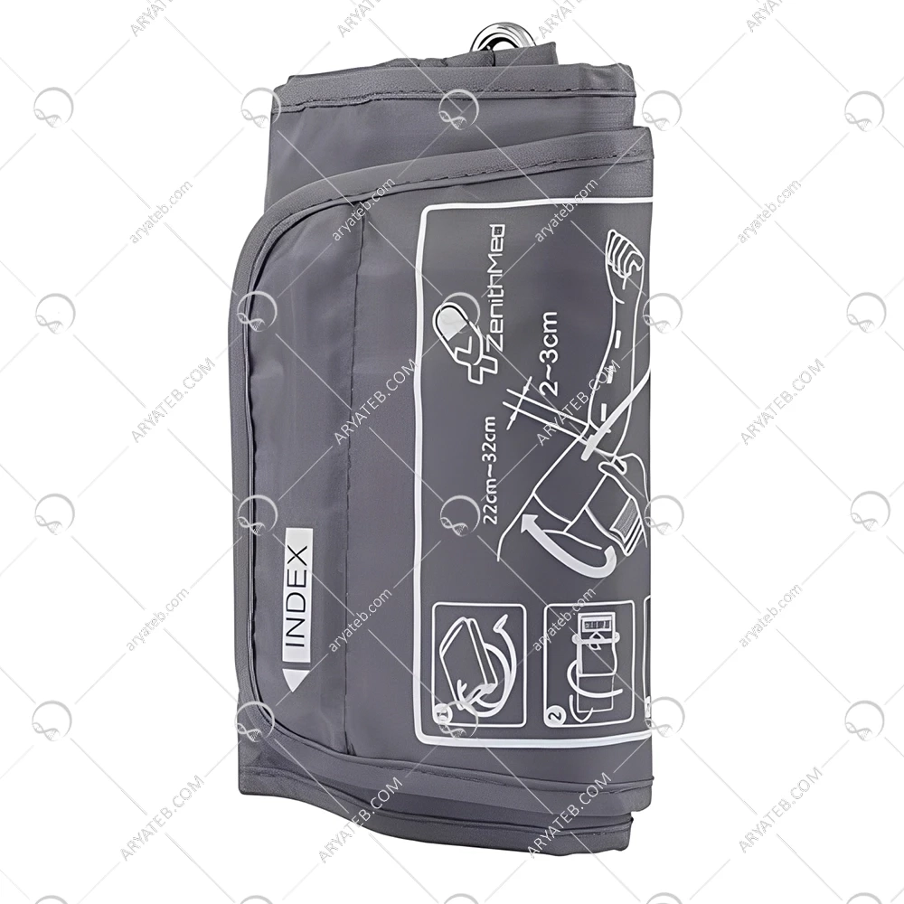 دستگاه فشارسنج زنیت مد LD-575 دارای طراحی ساده، ارگونومیک و مدرن است. بدنه اصلی دستگاه به رنگ سفید مات و از جنس پلاستیک مقاوم ساخته شده که حس کیفیت و دوام را منتقل میکند. ابعاد دستگاه به گونهای است که به راحتی روی میز قرار میگیرد و فضای زیادی را اشغال نمیکند. در قسمت جلوی دستگاه، یک صفحه نمایش LCD بزرگ و واضح قرار دارد که نتایج اندازهگیری شامل فشار سیستولیک، دیاستولیک و ضربان قلب را به صورت همزمان نمایش میدهد. اعداد و علائم روی صفحه نمایش با فونت درشت و خوانا طراحی شدهاند تا برای افراد مسن یا کمبینا نیز به راحتی قابل مشاهده باشند. زیر صفحه نمایش، سه دکمه فیزیکی با عملکرد مشخص و ساده تعبیه شده است: دکمه روشن/خاموش/شروع، دکمه انتخاب کاربر و دکمه مرور حافظه. دکمهها با رنگی متفاوت و با علائم واضح مشخص شدهاند. کاف (بازوبند) دستگاه نیز از پارچهای با کیفیت و مقاوم ساخته شده که به خوبی روی بازو قرار میگیرد و دارای یک لوله اتصال به بدنه اصلی است.