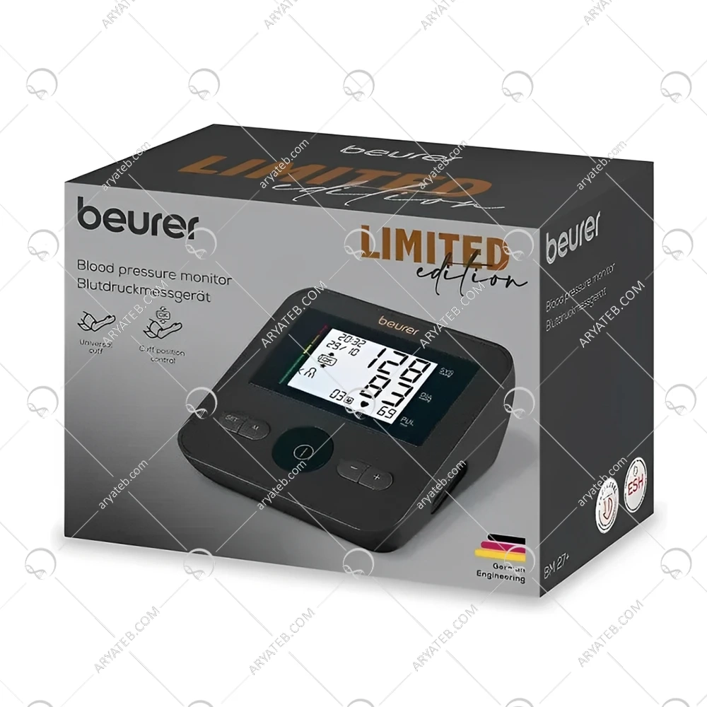 فشارسنج بازویی دیجیتال بیورر مدل BM27 Limited با قابلیت استفاده از آداپتور تایپ C، یک دستگاه پیشرفته برای اندازهگیری فشار خون و ضربان قلب است. این مدل امکان ذخیره ۶۰ نتیجه برای هر یک از دو کاربر را فراهم کرده و میانگین فشار خون صبح و شب را در هفت روز گذشته محاسبه میکند. نمایشگر بزرگ و خوانا به همراه ردهبندی WHO، بررسی محدوده فشار خون را آسانتر میکند. قابلیت تشخیص آریتمی، هشدار در صورت بروز خطا و نشانگر تعویض باتری از دیگر ویژگیهای این دستگاه هستند. کاف این فشارسنج برای بازوهایی با اندازه ۲۲ تا ۴۲ سانتیمتر مناسب بوده و نشانگر بسته شدن صحیح کاف، دقت اندازهگیری را افزایش میدهد. امکان اتصال به اپلیکیشن برای ذخیره و بررسی مقادیر اندازهگیریشده روی گوشی هوشمند فراهم شده است. این دستگاه از طریق باتری یا آداپتور تایپ C تغذیه میشود اما کابل تایپ C در بستهبندی محصول موجود نیست.