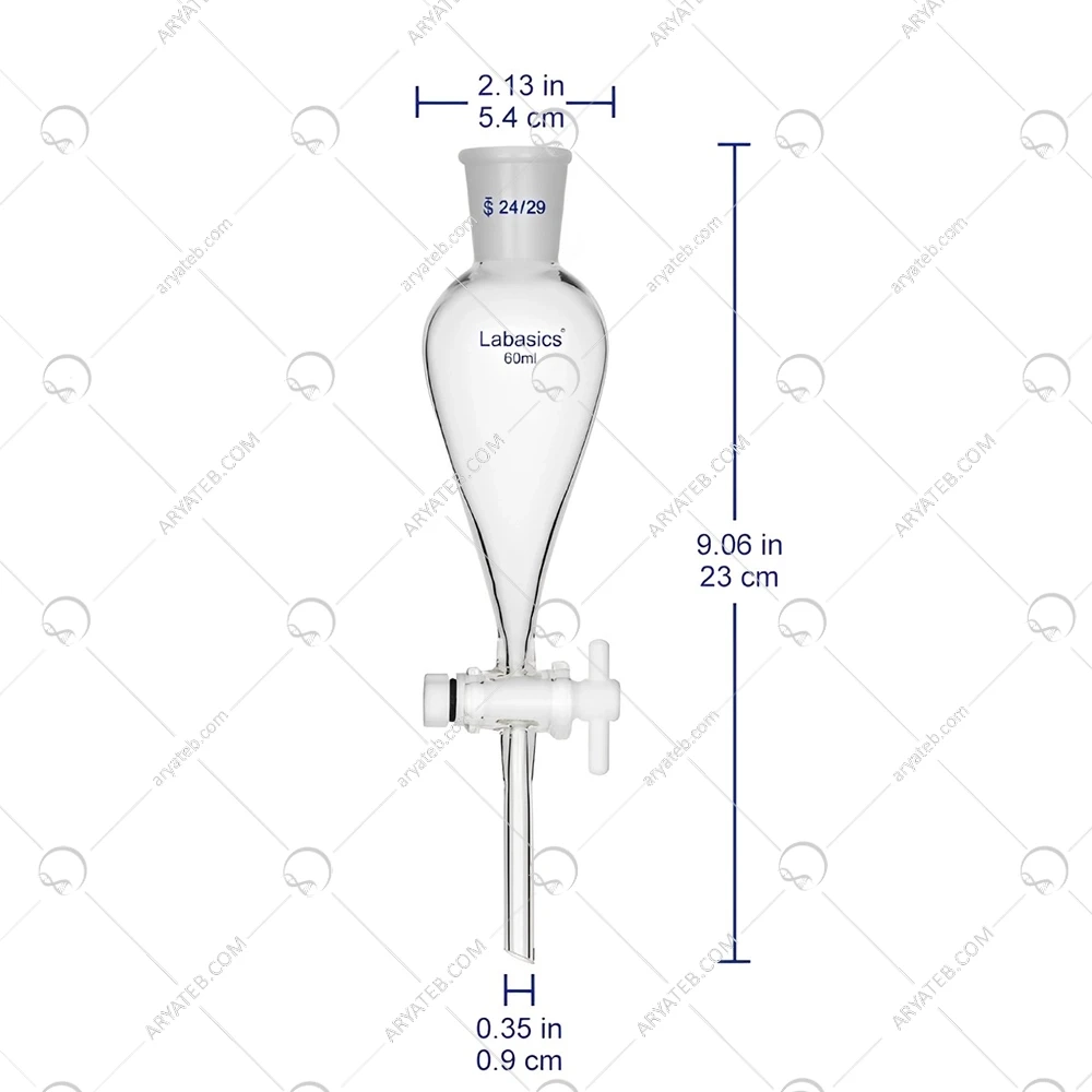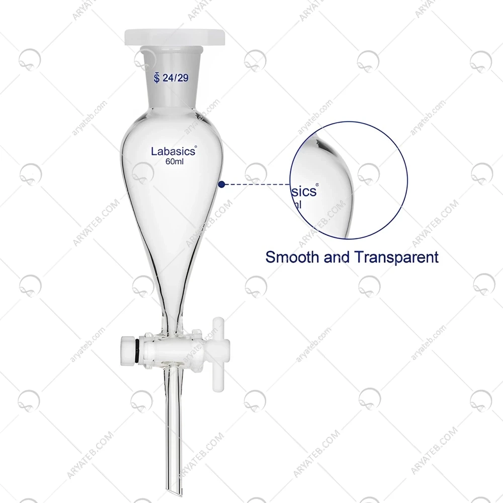 جداسازی دقیق: شکل گلابی شکل قیف و شیر تفلونی به شما امکان میدهند که مایعات را با دقت بسیار بالا از هم جدا کنید.