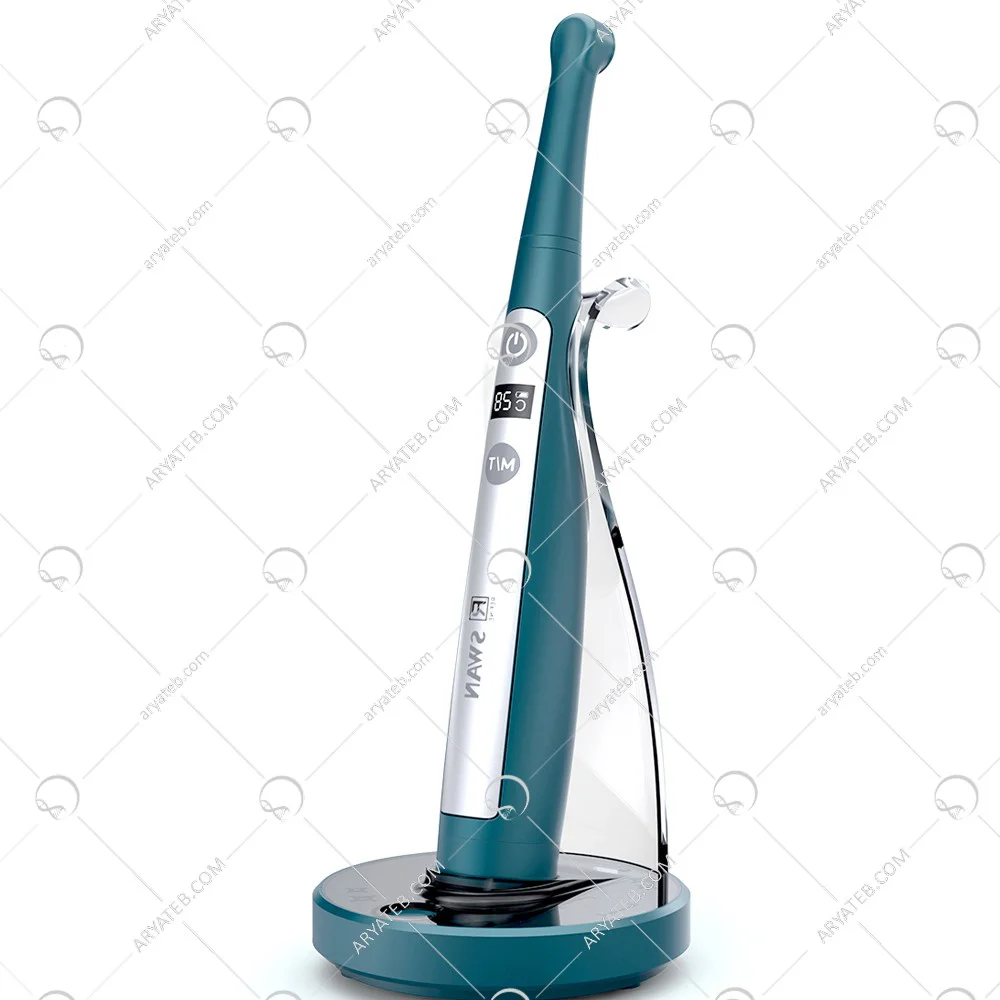 دستگاه لایت کیور 4 حالته swan تنها دارای چهار حالت کارکردی می باشد که موارد حساس و مواردی که حفره به پالپ نزدیک است را به بهترین شکل ممکن کیور می کند منبع تغذیه این لایت کیور باتری است که قابلیت شارژ شدن دارد برای استفاده بهتر و همچنین افزایش طول عمر دستگاه لایت کیور توصیه می کنیم که آن را پس از شارژ کامل مورد استفاده قرار دهید بدنه دستگاه معرفی شده تماما از آلومینیوم می باشد که به راحتی ضد عفونی می شود و به دلیل جنس خود وزن سبکی دارد و دندانپزشک هنگام کار با آن خسته نمی شود و به دلیل بی سیم بودن به راحتی جابجا می شود و دندانپزشک را موقع کار با مضیقه روبرو نمی کند در بسته خرید علاوه بر خود دستگاه، پایه شارژر، کابل شارژر، گاید لایت و هد لایت کاور نیز موجود می باشد طراح و سازنده دستگاه معرفی شده کمپانی refine کشور چین می باشد که محصولات با کیفیتی را در زمینه تجهیزات دندانپزشکی ارائه داده است اشعه آبی رنگ دستگاه لایت کیور برای بافت دهان زیانی ندارد اما برای چشمان دندانپزشک مضر می باشد و احتمال دارد او را به بیماری آب مروارید مبتلا کند بنابراین لازم است تا دندانپزشک هنگام کار با دستگاه لایت کیور swan از عینک رنگی استفاده نماید تا چشمانش از آسیب اشعه آبی رنگ محفوظ بماند .