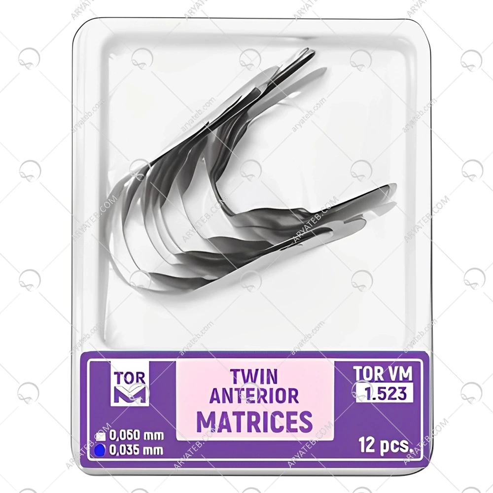ماتریس فلزی قدامی Tor VM یکی از ابزارهای ضروری در دندانپزشکی ترمیمی است که به طور خاص برای ترمیم و بازسازی دندانهای قدامی طراحی شده است. این ماتریسها با دقت و ظرافت خاصی ساخته میشوند تا به دندانپزشکان در ایجاد ترمیمهای زیبا، بادوام و عملکردی کمک کنند. در ادامه به معرفی کامل این محصول، ویژگیها، مزایا و کاربردهای آن میپردازیم: