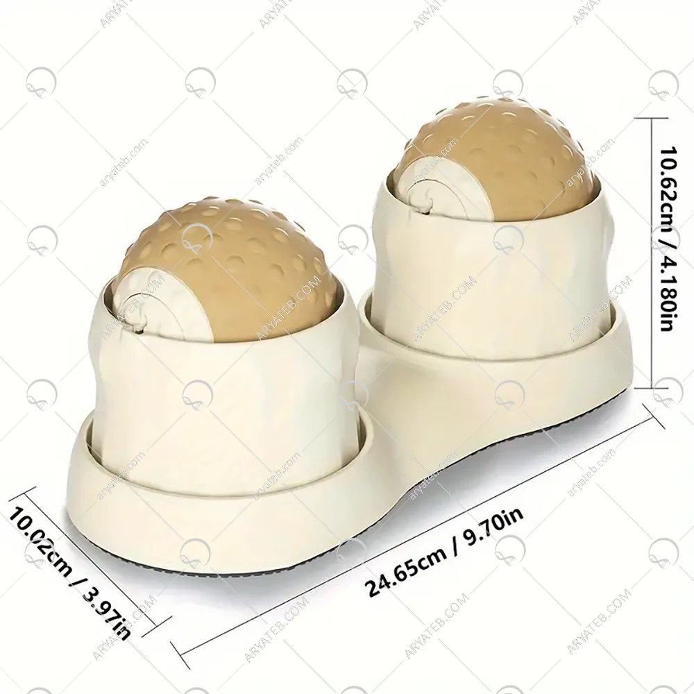 این ماساژور شامل 2 توپ پلاستیکی است که رویه آن با سیلیکون پوشانده شده است. سیلیکون روی توپ ها بسیار نرم است و احساس خوبی را در شما ایجاد میکند. از این ماساژور میتوان برای ماساژ پا، کمر، دست، ران و ... استفاده کرد.