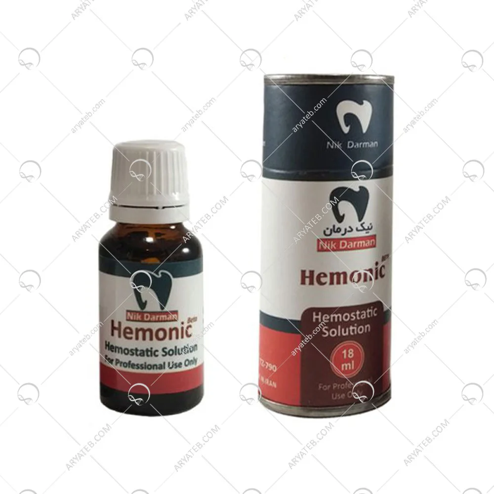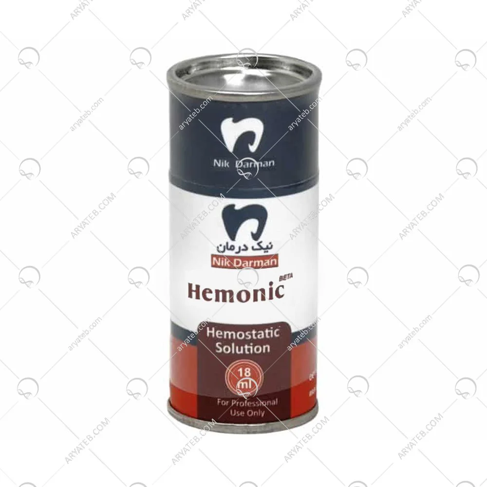 این ماده بی رنگ است باعث جلوگیری سریع از خون ریزی می شود و به طوق دندان ها رنگ نمی دهد مایع هموستات نیک درمان محصول کشور ایران و ساخت شرکت نیک درمان یه منظور سهولت در استفاده به صورت محلول ارائه شده است مایع هموستات دندانپزشکی یا خون بند برای کنترل خون ریزی در لثه حین انجام عمل دندانپزشکی است با استفاده از مایع خون بند نیک درمان در چند ثانیه خون ریزی لثه تمام می شود.