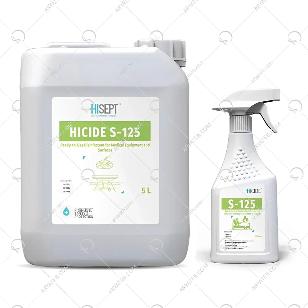 ترکیبات دقیق هایساید اس-۱۲۵ معمولا توسط تولیدکننده مشخص میشود و ممکن است در فرمولاسیونهای مختلف کمی متفاوت باشد. با این حال، به طور کلی این محلول حاوی ترکیبات فعال مانند ترکیبات آمونیوم کواترنر است که به دلیل خواص ضدعفونی کنندگی قوی خود، به طور موثر میکروبها را از بین میبرند.