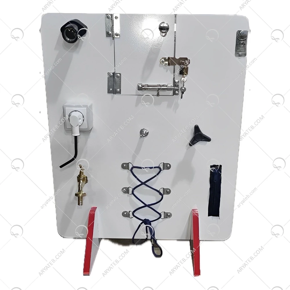 ویژگیها: شامل اجزای مختلف مانند دکمه، زیپ، قفل، و بند برای شبیهسازی وظایف روزانه.