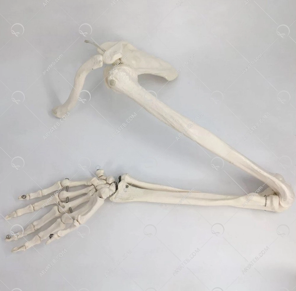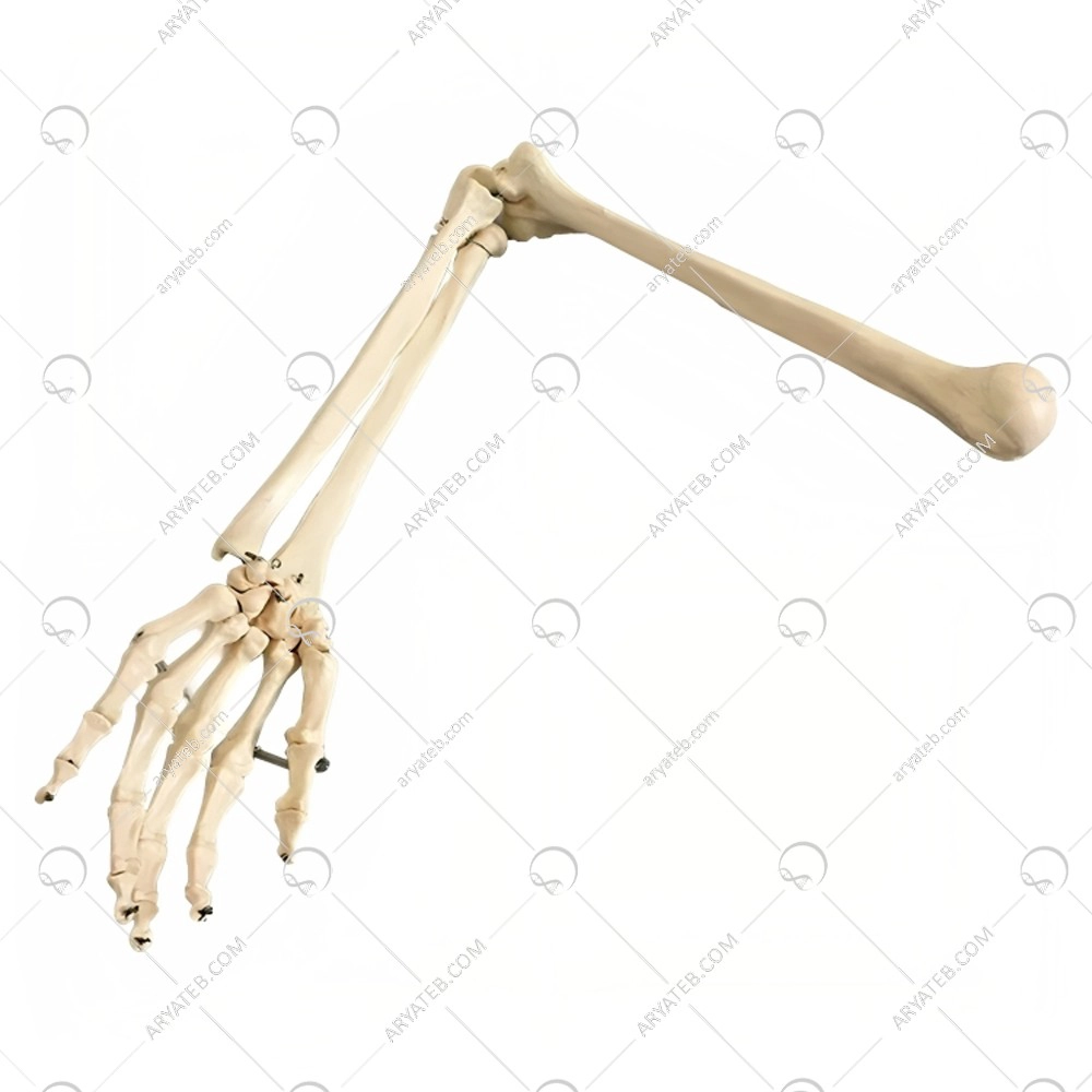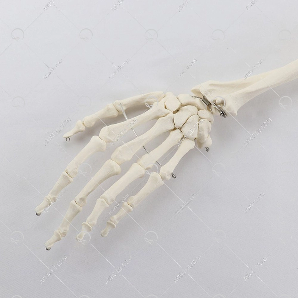اسکلت دست انسان اندازه طبیعی یک نمونه ساختشده دقیق از تمام استخوانهای تشکیلدهنده دست، مچ و بخشی از ساعد است. این مدلها معمولاً با مقیاس ۱:۱ (اندازه واقعی) ساخته میشوند تا تجربه کاربری و آموزشی کاملاً منطبق بر واقعیت باشد. تولید این مولاژها نیازمند دانش آناتومیکی عمیق است تا کوچکترین جزئیات ساختاری، از جمله برجستگیهای استخوانی، شیارهای مفصلی و محل اتصال لیگامانها حفظ شود.