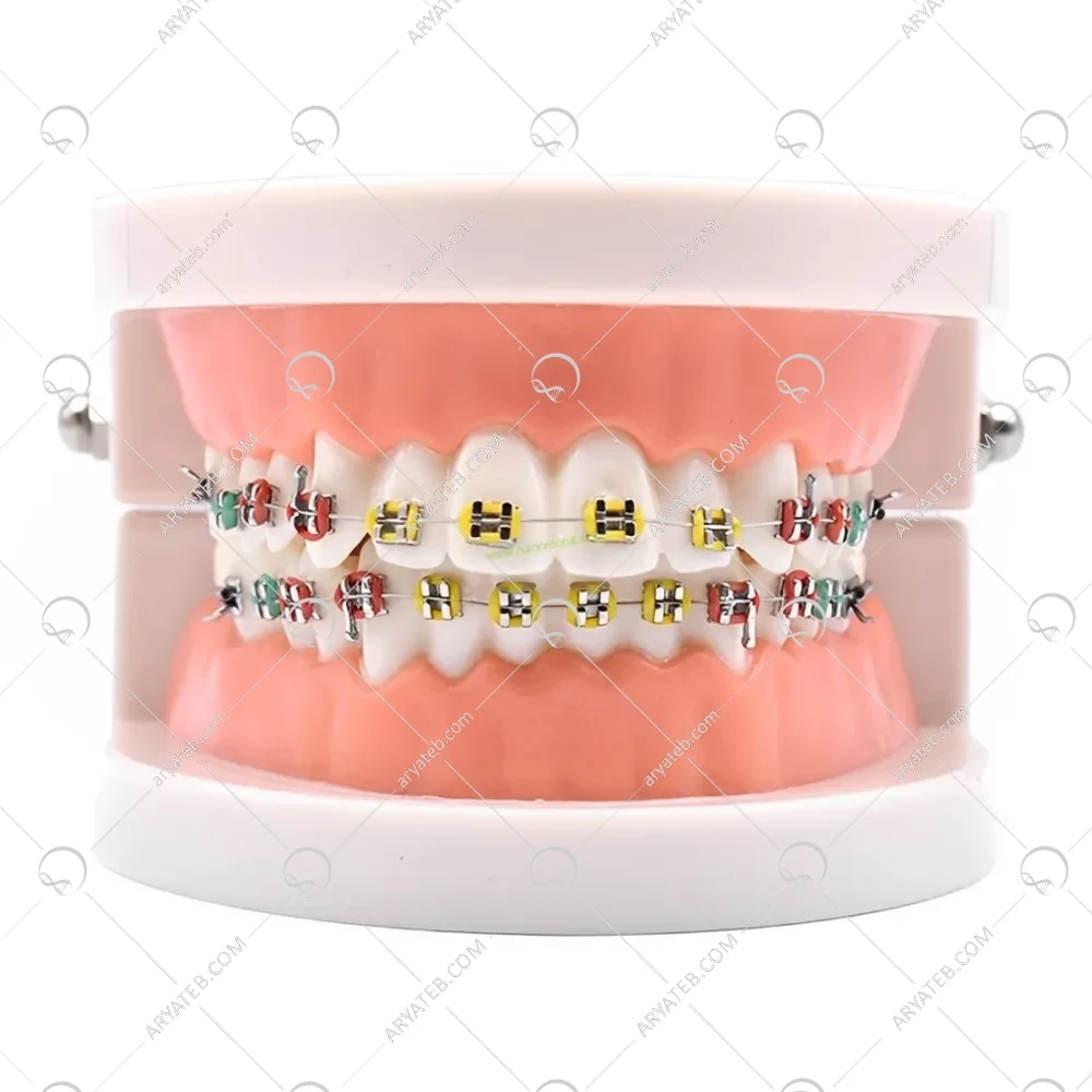 - مدل درمان نمایشی ارتودنسی دندان با براکت فلزی،مدل توضیح دهنده آرچ وایر با بریس