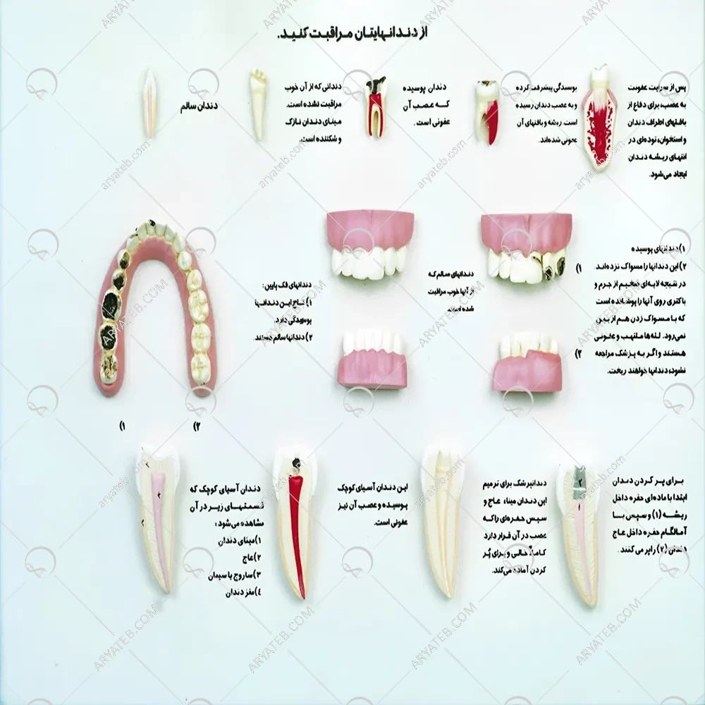 - مدلهای کامل: این مدلها یک فک کامل را نشان میدهند که در آن دندانهای سالم و پوسیده در کنار هم قرار دارند.