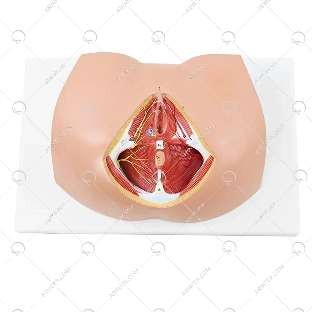 - مولاژ شامل جزئیات دقیقی از عضلات کف لگن، از جمله عضلاتی مانند لواتور آنی، پیسونیوس و دیگر عضلات مرتبط است که به درک بهتر ساختار این ناحیه کمک میکند.