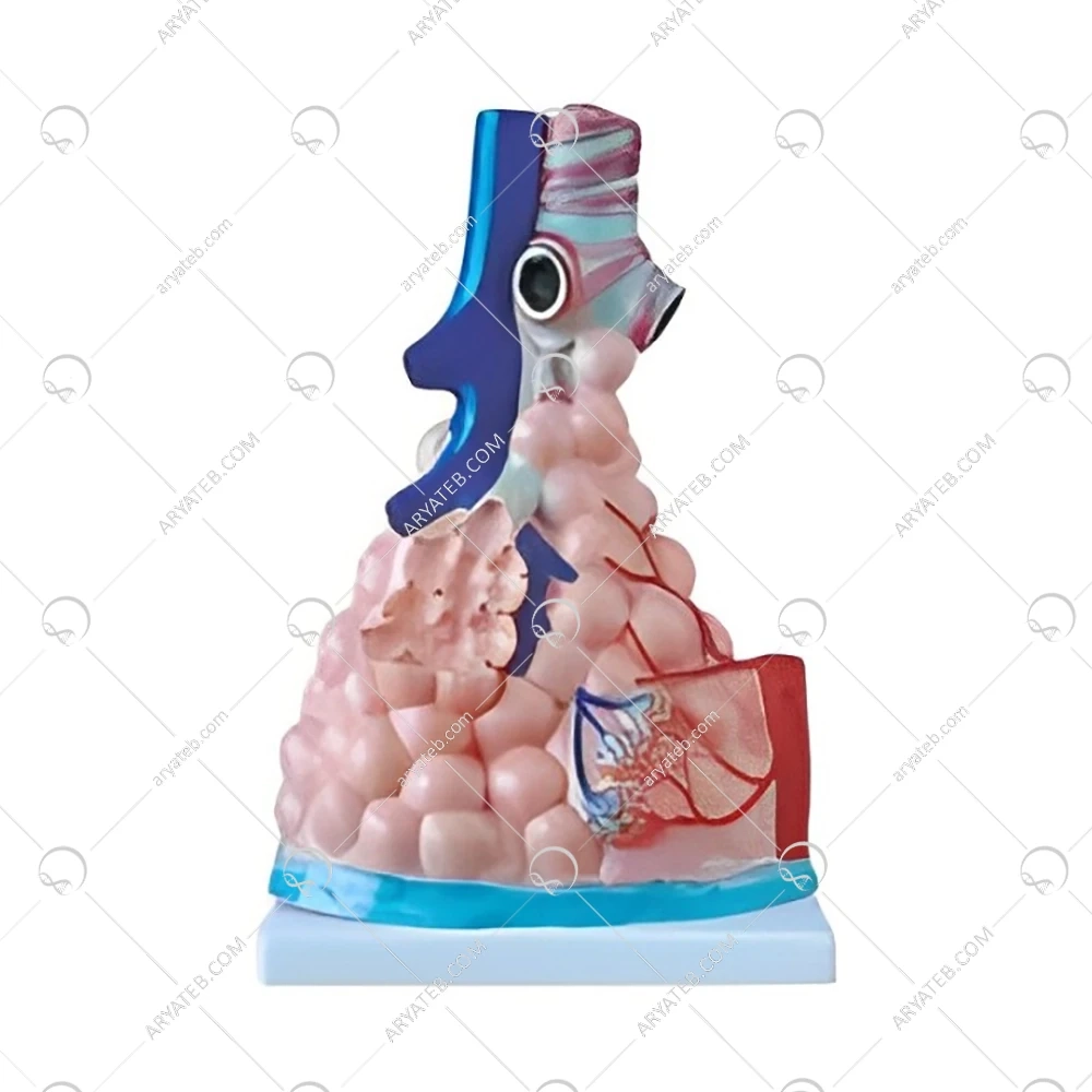 مدل آلوئول: همچنین، مدل آلوئول نیز به دو صورت مقیاس بزرگ و مقیاس کوچک عرضه میشود. مدل بزرگ شده تا 150 برابر اندازه اصلی است و مقطع چند آلوئول مجاور را نمایش میدهد. مدل دوم که 1000 برابر بزرگ شده است، جزئیات دقیق تری از آلوئولها را نشان میدهد.