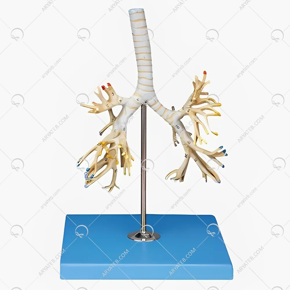 نمایش برونشیتها: این مدل برونشهای اصلی که نای را به ریهها متصل میکنند، و همچنین شاخههای برونشیولهای کوچکتر را به نمایش میگذارد. این شاخهها مسیرهای انتقال هوا به آلوئولها هستند.