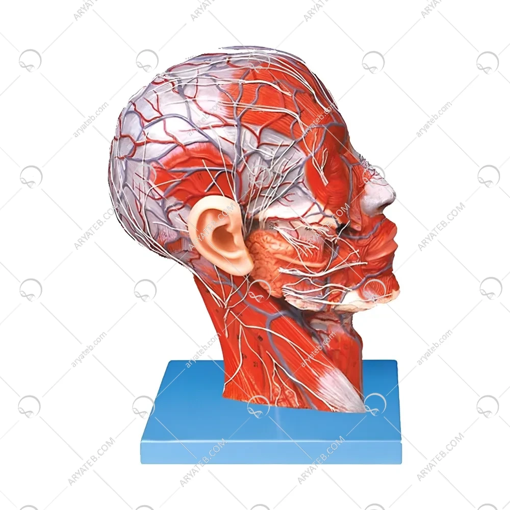 مولاژ نصف سر با نمایش رگها، یک مدل آموزشی دقیق و تخصصی است که بخش راست یا چپ سر انسان را به همراه رگهای خونی به نمایش میگذارد. این مولاژ، با تمرکز بر آناتومی سیستم عروقی سر، به دانشجویان و پزشکان کمک میکند تا عملکرد و ساختار رگهای خونی این ناحیه را بهتر درک کنند.